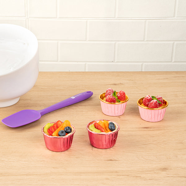 Prevent messy muffin mishaps with our Panificio Foil Muffin Liners. These greaseproof cupcake liners boast a greaseproof coating that ensures easy removal, allowing your treats to effortlessly slide out without sticking. Crafted from heavy-duty foil paper, these aluminum cupcake holders maintain their shape, ensuring optimal performance in both microwaves and ovens. The elegant pleated design not only enhances the visual appeal of your desserts but also provides a sturdy base, beautifully showcasing each creation. With a compact 2.7 inches by 2.7 inches size and a convenient 1.6 inches height, these liners are ideal for small to medium-sized confections. Their rose gold hue adds a touch of sophistication, making them perfect for upscale events and everyday use alike. Elevate your baking presentation and streamline kitchen operations by incorporating these reliable foil muffin liners into your service. Each order includes 500 Panificio Foil Muffin Liners.