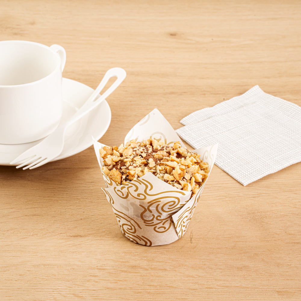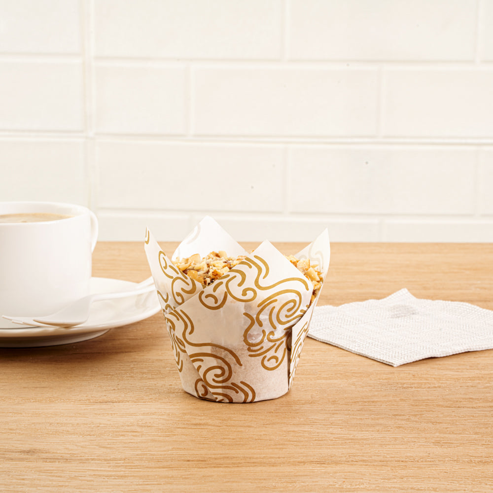 Display your culinary creations with confidence. Panificio Greaseproof Tulip Baking Cups feature a greaseproof coating that ensures easy dessert removal, making them ideal for busy bakeries that rely on efficient operations. These tulip baking cups are crafted from heavy-duty paper, which maintains its shape during baking, allowing your treats to look as perfect as they taste. The elegant tulip design elevates dessert presentation, providing an eye-catching display that enhances customer satisfaction. With dimensions of 3.35 inches and capacity of 3.5 ounce, these cupcake liners are designed to fit standard-sized muffins and cupcakes, ensuring versatility in your kitchen. Made from oven-safe paper, these greaseproof muffin wrappers are not only functional but also environmentally friendly, appealing to eco-conscious consumers. Elevate your dessert offerings and streamline your baking process with these reliable baking essentials. Sold in a 50 count box.