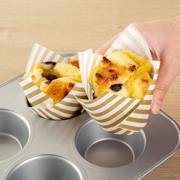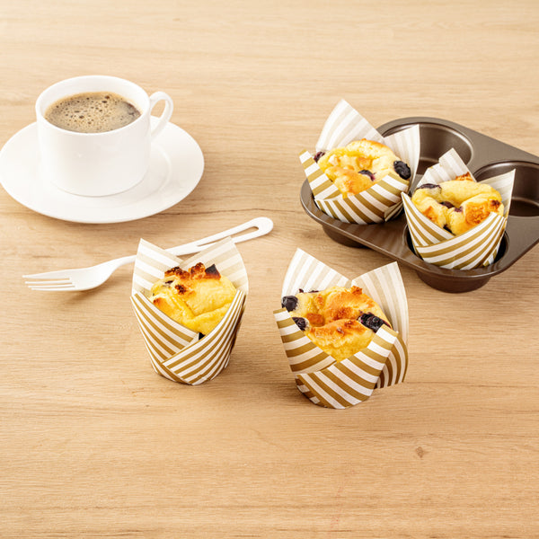 Enhance your dessert presentation with ease and style. Panificio Brown Greaseproof Tulip Cupcake Liners feature a greaseproof coating that ensures the effortless removal of baked goods, preventing any unsightly sticking. Crafted from heavy-duty paper, these greaseproof cupcake liners maintain their shape in the oven, providing reliable baking results and reducing waste. The elegant tulip design beautifully showcases cupcakes and muffins, making them an eye-catching centerpiece at any event. With a height of 3.15 inches and 3.5 ounce capacity, these disposable baking cups accommodate sweet treats of various sizes while ensuring optimal performance. Made from recyclable paper, they offer a sustainable option for eco-conscious establishments. Elevate your bakery's offerings with these versatile and practical liners. Sold in a 50 count box.