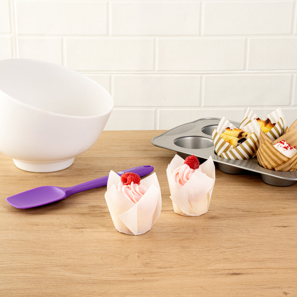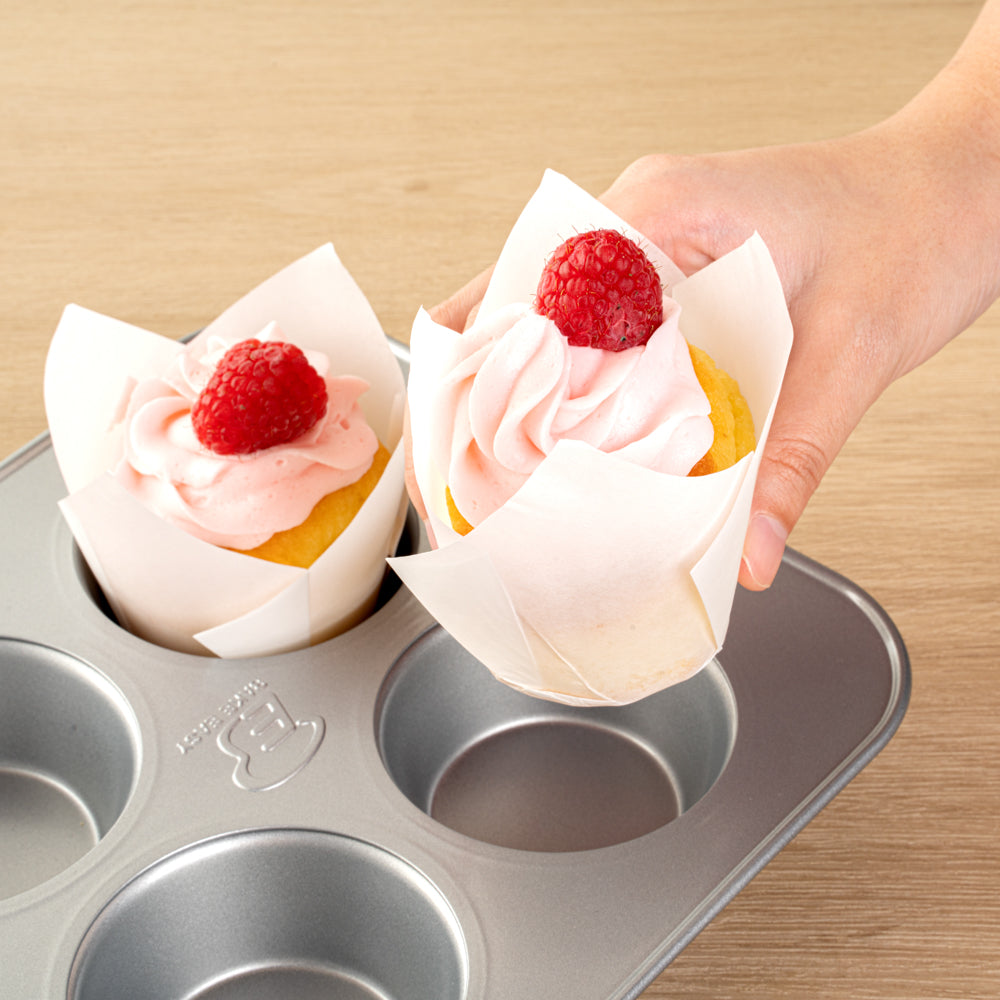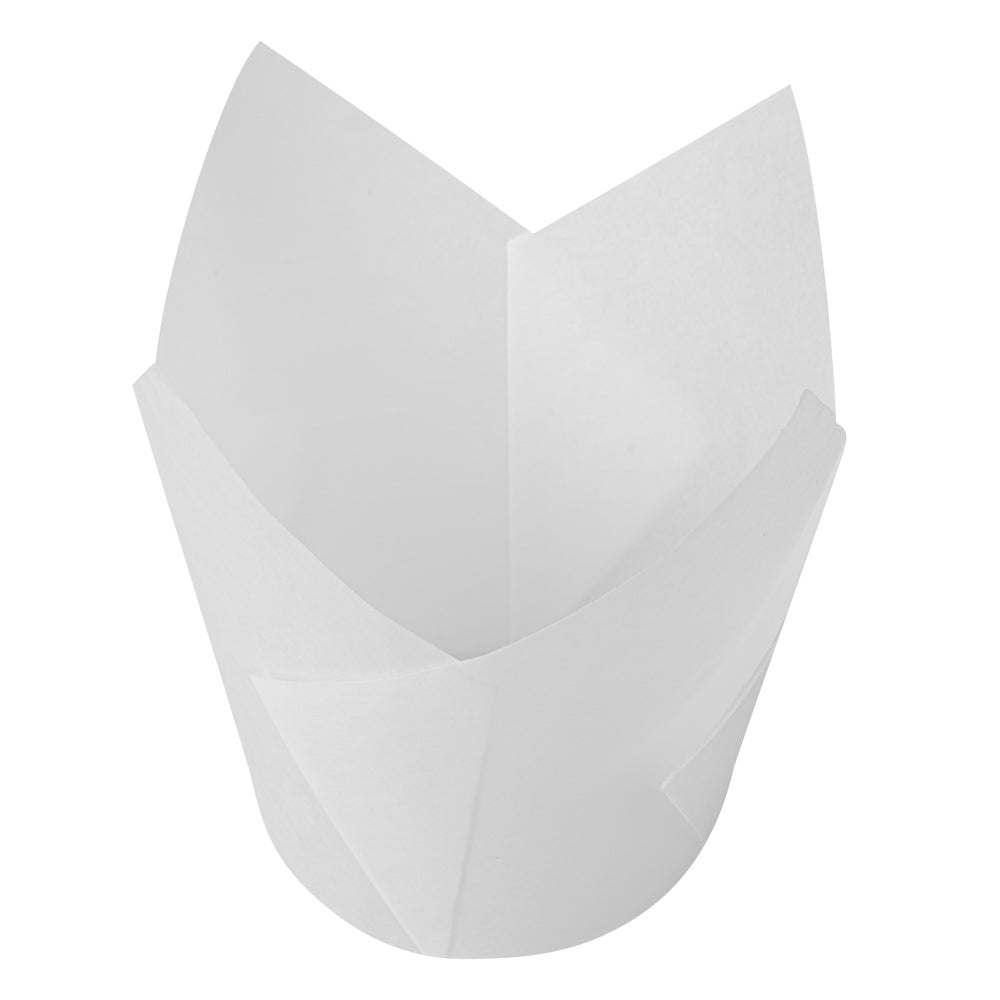 Enhance your dessert presentation with optimal functionality. Panificio Greaseproof Tulip Baking Cups boast a greaseproof coating that ensures your baked treats are effortlessly released, maintaining their perfect shape every time. These tulip baking cups feature an elegant tulip design that beautifully showcases cupcakes and muffins, making them the ideal choice for patisseries aiming to impress with eye-catching displays. Constructed from heavy-duty paper, these white muffin liners hold their shape in the oven, even at high temperatures, ensuring consistency and reliability in every batch. With a compact size of 3.35 inches and 3.5-ounce capacity, they fit seamlessly into standard baking trays while enhancing your foodservice operations' efficiency. By choosing these greaseproof cupcake liners, you are assured of excellent quality and performance, making them a must-have for any professional kitchen. Sold in a 50 count box.