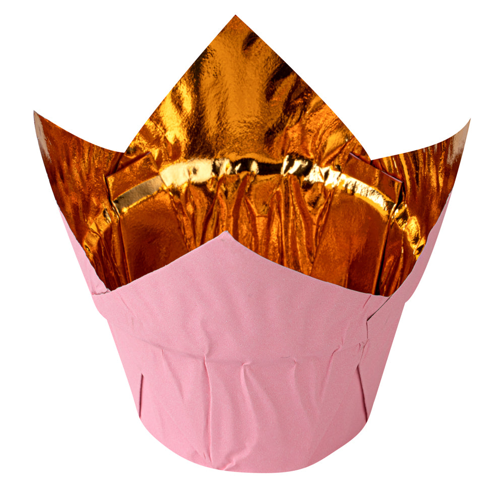 3.9 OZ PINK FOIL PAPER TULIP BAKING CUP