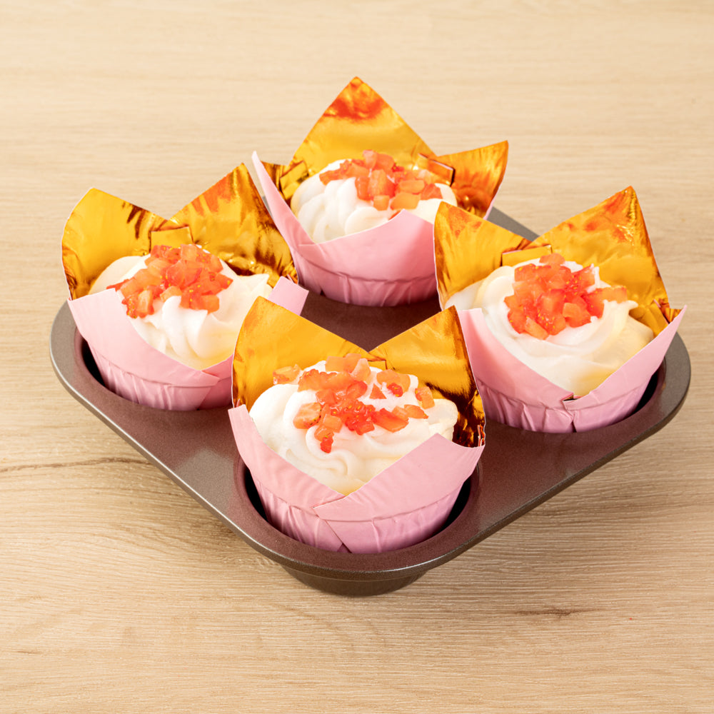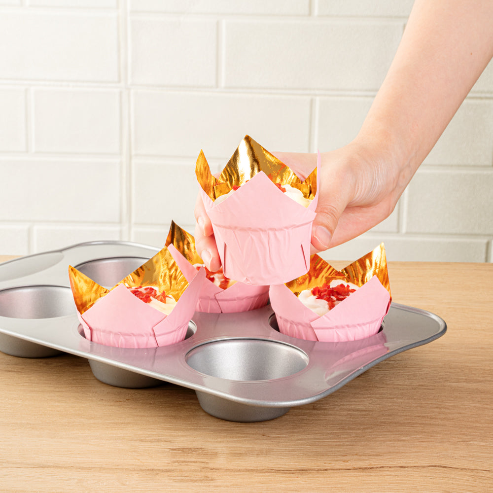 Enhance your dessert presentation with easy removal. The Panificio Pink Tulip Cupcake Liners feature a greaseproof coating that ensures hassle-free removal of treats, perfect for busy bakeries using tulip cupcake liners. Their elegant tulip design beautifully showcases your cupcakes and muffins, elevating the dining experience and capturing customer attention. Constructed from heavy-duty foil paper, these liners maintain their shape during baking, ensuring consistent results and making them ideal for operations utilizing foil baking liners. With dimensions of 3.35 inches in length and width and 2.75 inches in height, these disposable cupcake liners fit a variety of dessert creations. Additionally, they are BPA-free, oven safe, and recyclable, aligning with sustainable baking practices. Upgrade your pastry presentation and efficiency today with these versatile baking essentials. Each order includes 50 Panificio Pink Tulip Cupcake Liners.