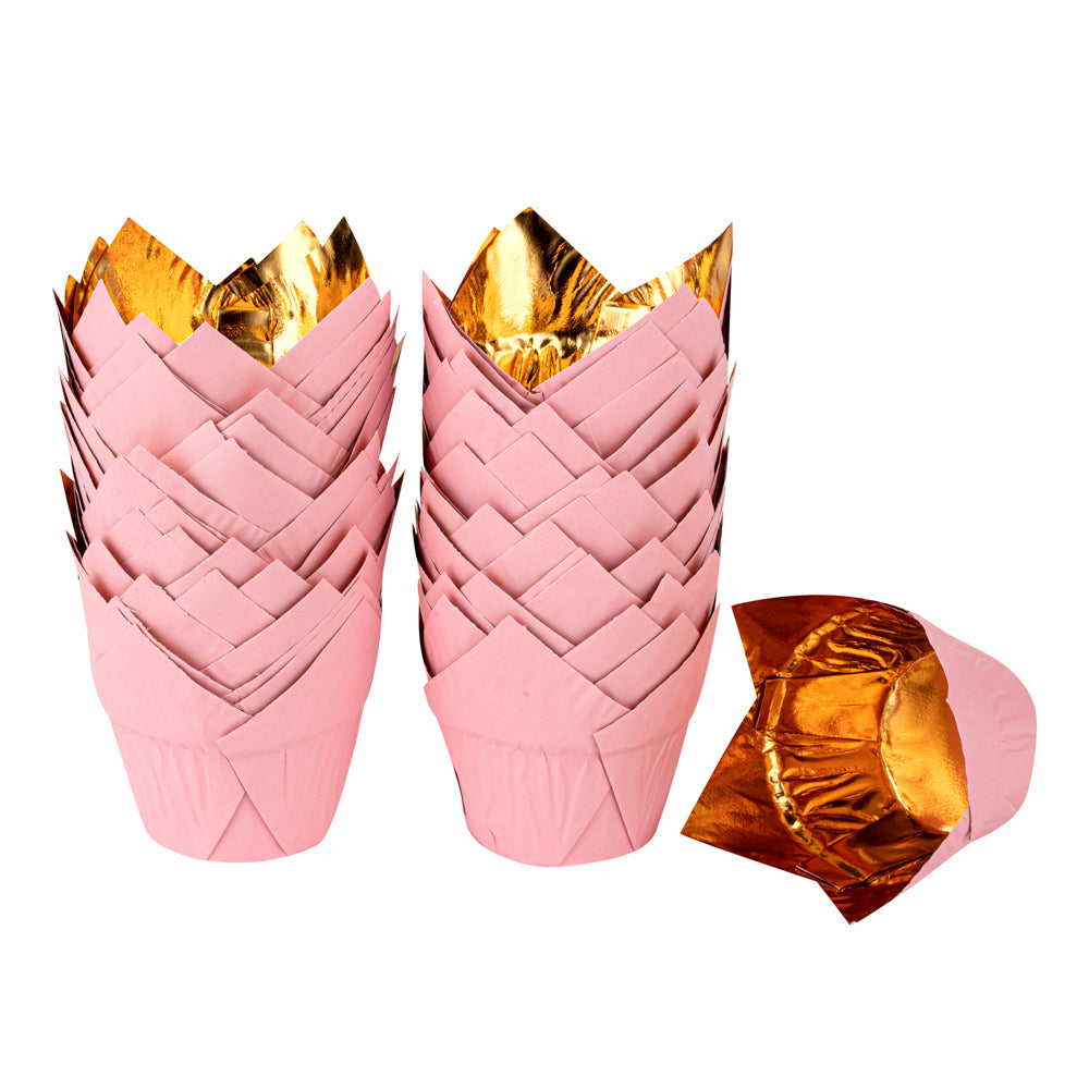 3.9 OZ PINK FOIL PAPER TULIP BAKING CUP