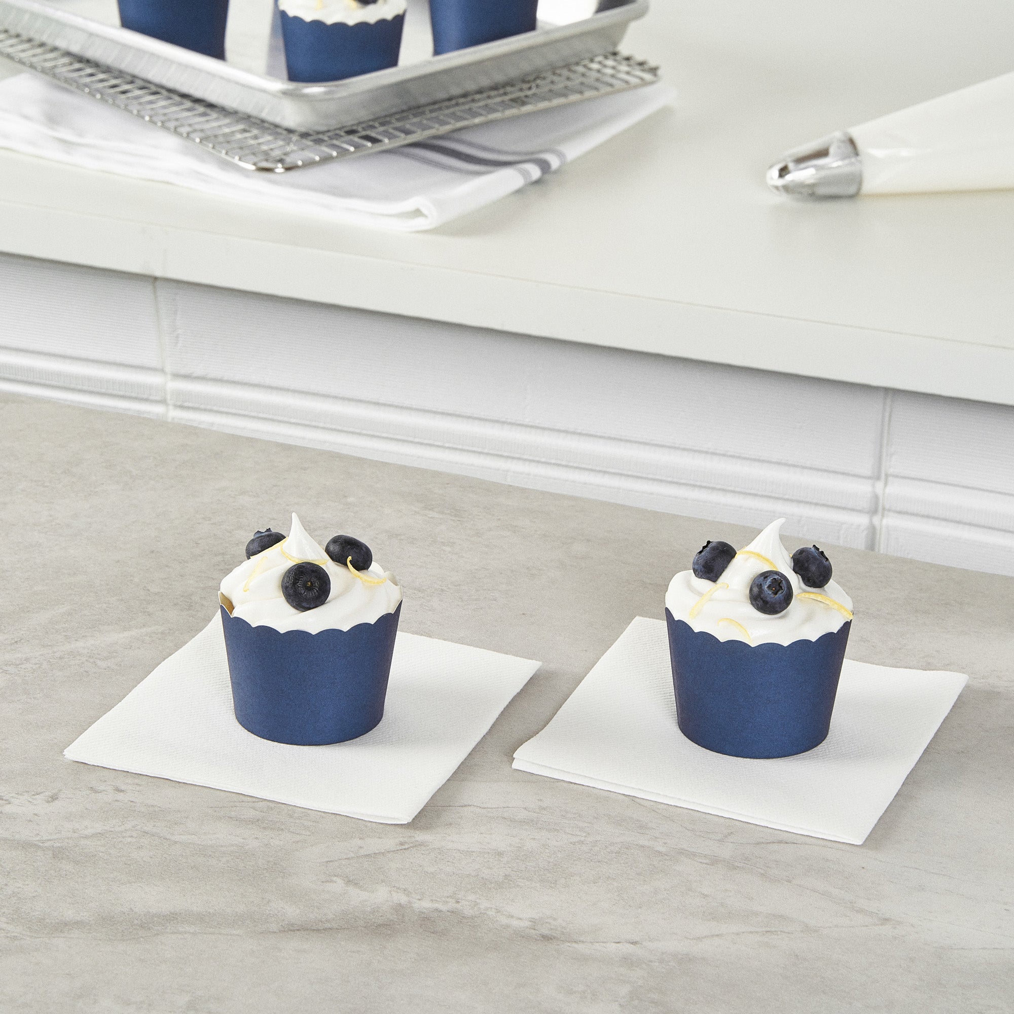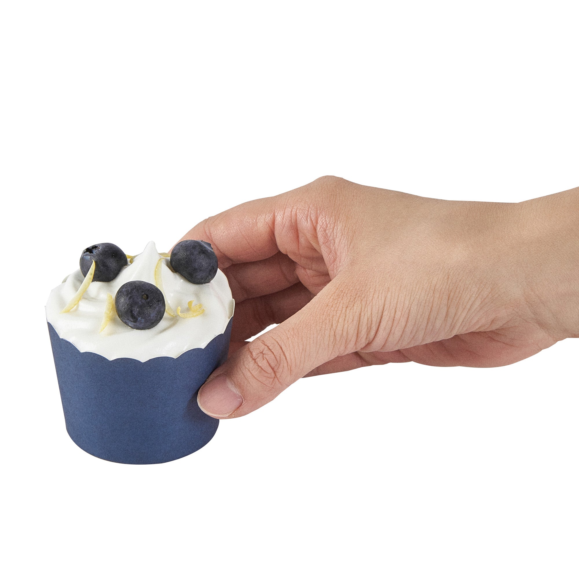 Enhance your dessert presentation with elegance and practicality. The Panificio Greaseproof Mini Baking Cups boast a greaseproof lining that ensures your 3.38-ounce treats release effortlessly, minimizing waste and maximizing ease for your foodservice operations. With their distinctive scalloped edges, these mini baking cups add a touch of sophistication to your confections, making them ideal for bakeries and catering events seeking a refined display. Their midnight blue color and oven-ready design enable you to bake directly in the cup, streamlining your baking process and saving valuable time. Perfect for creating stunning cupcake liners, these cups measure 2.38 inches in both length and width, with a height of 1.75 inches, offering a perfect fit for your creative confections. Elevate your dessert offerings today with these versatile paper baking cups. Each order includes 200 Panificio Greaseproof Mini Baking Cups.