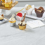 Stylishly bake and serve individual blueberry-topped cheesecakes with our Panificio 3-ounce Round Rose Gold Paper Small Baking Cups. With chic pleated detailing, these baking cups make their walls extra strong and sturdy. Made from premium paper, these cupcake liners are sturdy, ensuring even baking and avoiding the need for extra tins. The grease-resistant lining of these baking liners prevents the contents from sticking to the base. Withstanding temperatures up to 425F, these small baking cups are oven-safe and freezer-safe, making them ideal for baking bite-sized pastries. Featuring a reinforced rolled rim, these cupcake liners maintain their perfectly round shape. Containing up to 3 ounces, each paper baking cup measures 2.5 inches in diameter by 1.5 inches in height. Sold in a 200 count box.