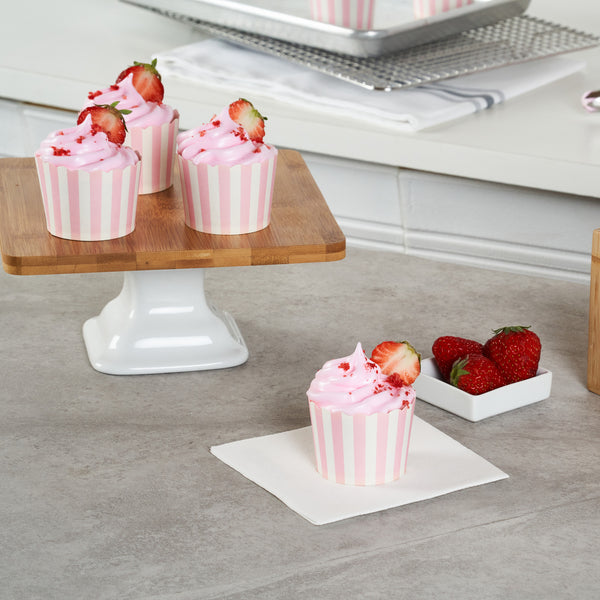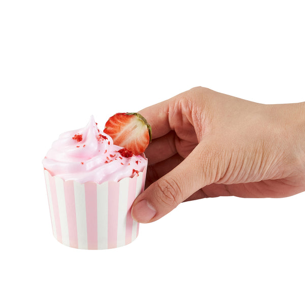 3 OZ ROUND STRIPE PINK PAPER MINI BAKING CUP - SCALLOPED