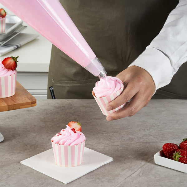 Elevate your dessert presentation with elegant scalloped designs. The Panificio Greaseproof Paper Cupcake Liners feature scalloped edges that enhance the presentation of baked goods, making them ideal for upscale events. With a greaseproof lining, these baking cups ensure effortless release of baked treats, maintaining their pristine appearance and texture, perfect for professional kitchens working with greaseproof baking cups. Each liner boasts a 2.38-inch diameter and a height of 1.75 inches, providing a sturdy, durable structure for cupcakes and muffins. The 3.38-ounce capacity is optimal for standard-sized portions, ensuring consistent serving sizes. Enhance your culinary offerings with these versatile and practical paper cupcake liners, ideal for any foodservice establishment. Each order includes 200 Panificio Greaseproof Paper Cupcake Liners.