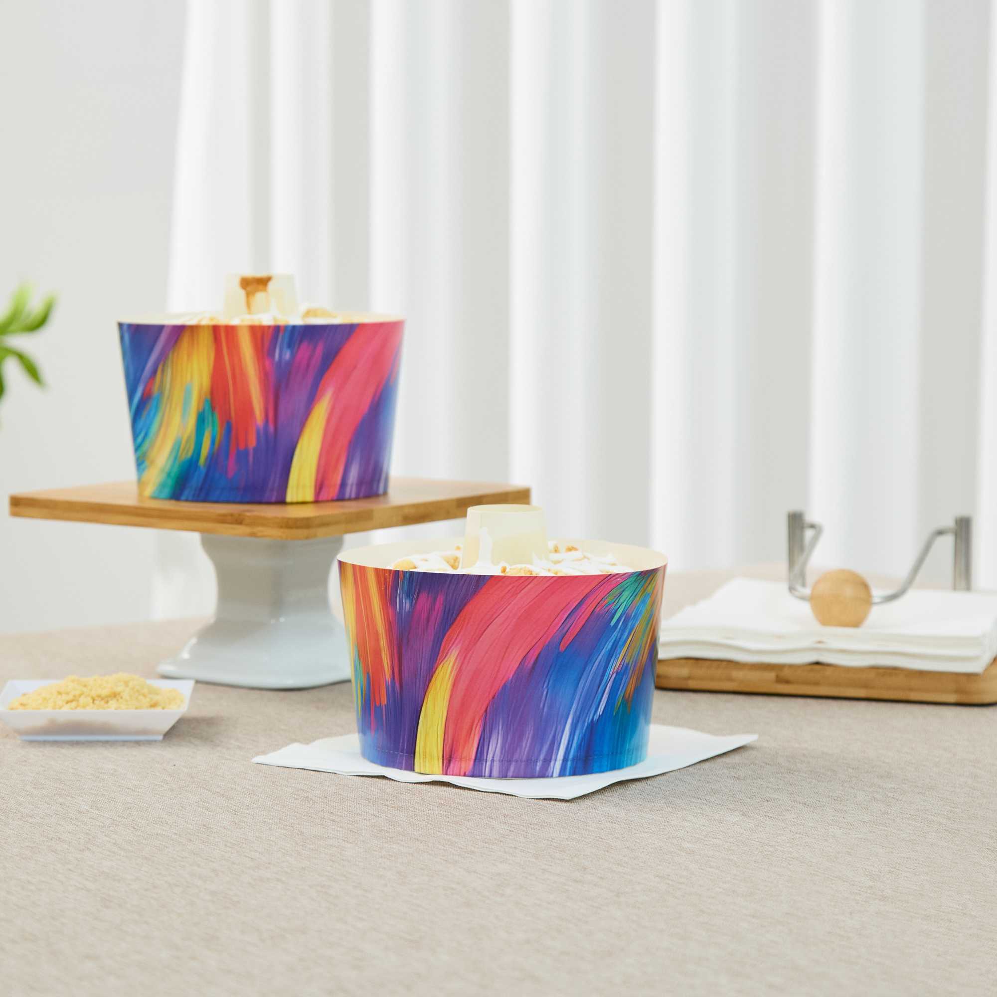 38 OZ PAPER BAKING RING MOLD - COLORFUL ABSTRACT WAVES, GREASEPROOF