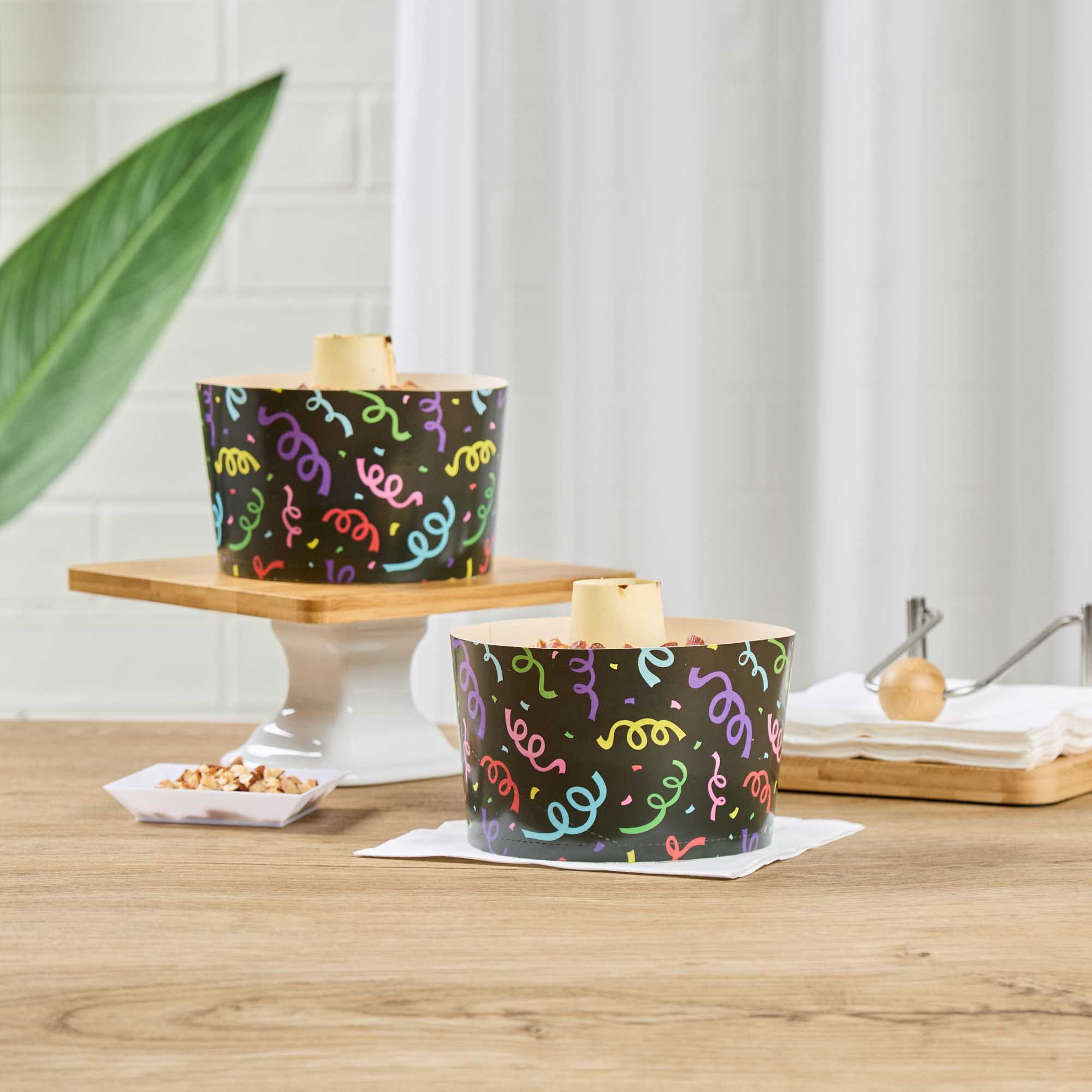 38 OZ PAPER BAKING RING MOLD - COLORFUL STREAMERS, GREASEPROOF