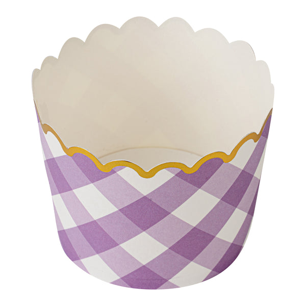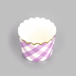 4.5 OZ PURPLE PLAID PAPER SCALLOPED BAKING CUP - GOLD RIM