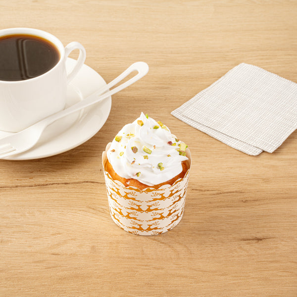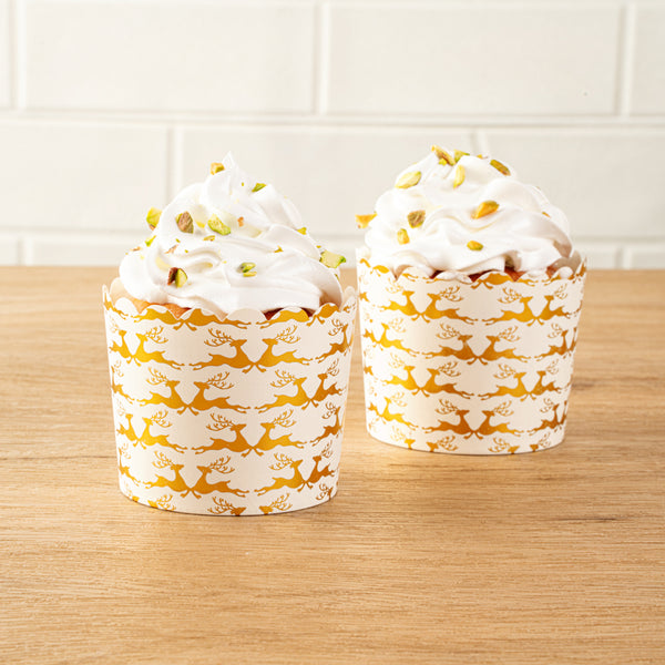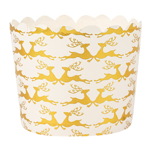 4.5 OZ WHITE PAPER SCALLOPED BAKING CUP - GOLD REINDEER