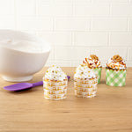 Enhance your dessert presentation with reliable performance. Panificio Greaseproof Cupcake Liners feature a greaseproof coating that ensures easy removal of baked goods, making them ideal cupcake liners for any busy bakery. The scalloped design beautifully showcases desserts and pastries, adding an elegant touch that elevates the visual appeal of your sweet creations. Constructed from heavy-duty paper, these paper baking molds maintain their shape even in ovens and microwaves, ensuring consistent results and saving time during high-volume baking sessions. Measuring 2.75 inches in length and width, with a height of 2.12 inches, these liners are designed to fit perfectly in standard cupcake trays, providing a snug fit that prevents spills and enhances presentation. Made from recyclable paper, they offer an eco-friendly option for sustainable foodservice solutions. Choose these greaseproof cupcake liners to ensure impeccable results every time. Sold in a 500 count box.