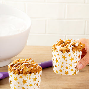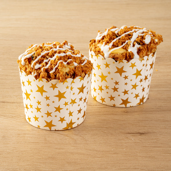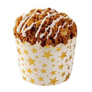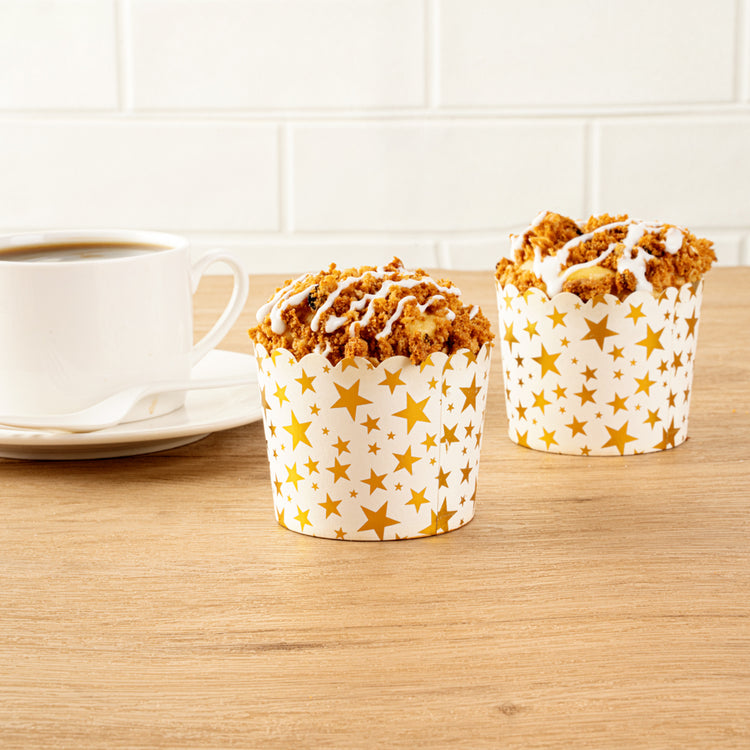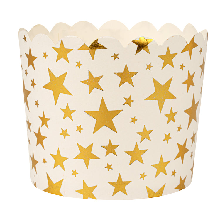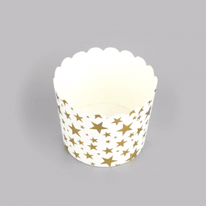 4.5 OZ WHITE PAPER SCALLOPED BAKING CUP - GOLD STARS