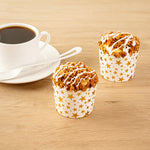 Effortlessly elevate dessert presentations with greaseproof baking cups. Panificio Greaseproof Baking Cups feature a greaseproof coating that allows easy removal of baked goods, preventing your creations from sticking and ensuring seamless service. These disposable baking cups are crafted from heavy-duty paper, holding their shape in the oven with dimensions of 2.75 inches by 2.75 inches, offering optimal performance for consistent results. The scalloped design beautifully enhances the presentation of desserts and pastries, making them ideal muffin liners for any bakery or café. Use these cupcake molds to maintain the integrity of your treats, whether in the oven or microwave, while also being recyclable for an eco-conscious choice. Enhance your baking efficiency and visual appeal with these essential baking accessories. Sold in a 50 count box.