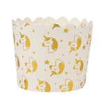 4.5 OZ WHITE PAPER SCALLOPED BAKING CUP - GOLD UNICORNS