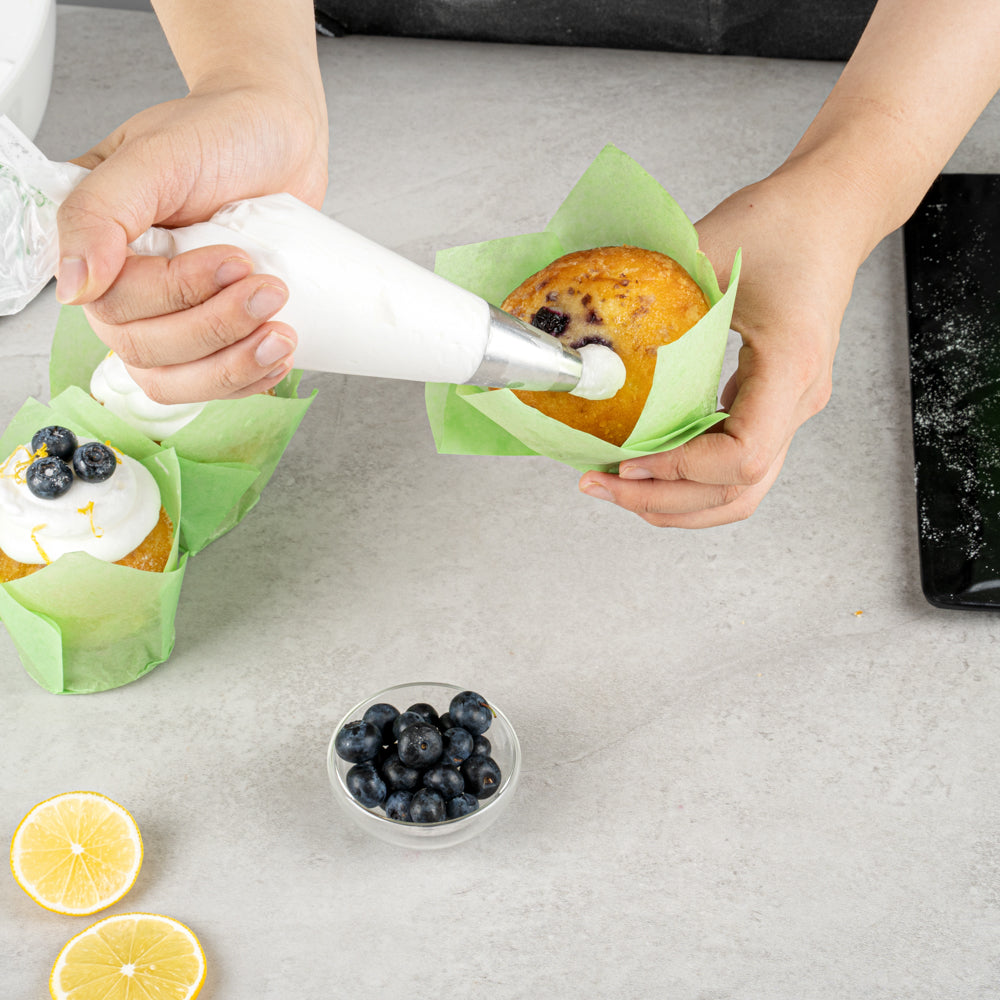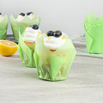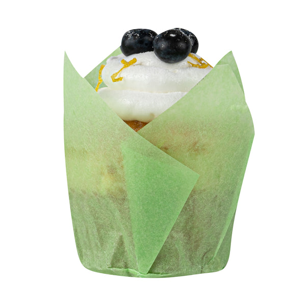 Present scrumptious treats in a stylish way with our Panifico 4-ounce Green Paper Tulip Baking Cups. Featuring a greaseproof lining, these disposable baking cups are the mess-free solution to enjoying baked goods without damaging their delicious structure. These recyclable tulip cupcake liners are designed to handle high temperatures, up to 425F, to bake all kinds of cupcakes. With a vibrant green finish and attractive tulip design, these 3.5-inch cupcake paper cups instantly enhance your dessert presentation and complement the decor at any event. Containing up to 4 ounces, these cupcake liners are perfect for serving cupcakes, muffins, and mini cheesecakes. Sold in a 200 count box.
