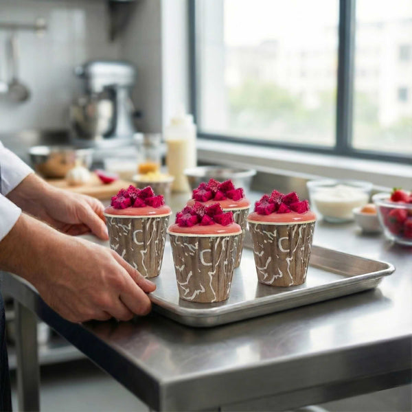 Designed with a greaseproof coating that won’t stick to desserts. Prevents unsightly messes and oils from leaking through!