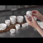 Heavyweight paper maintains its shape while pouring in batters and baking in the oven. Perfectly frames desserts and won’t wrinkle!