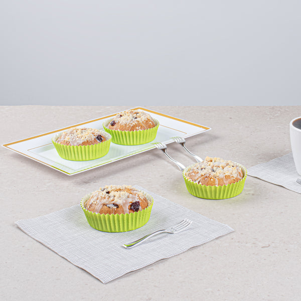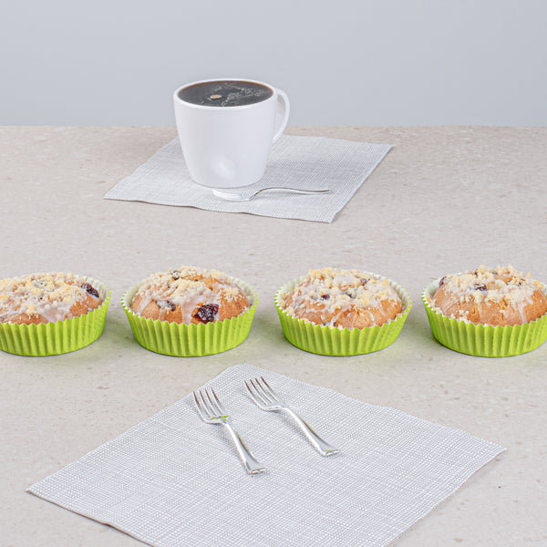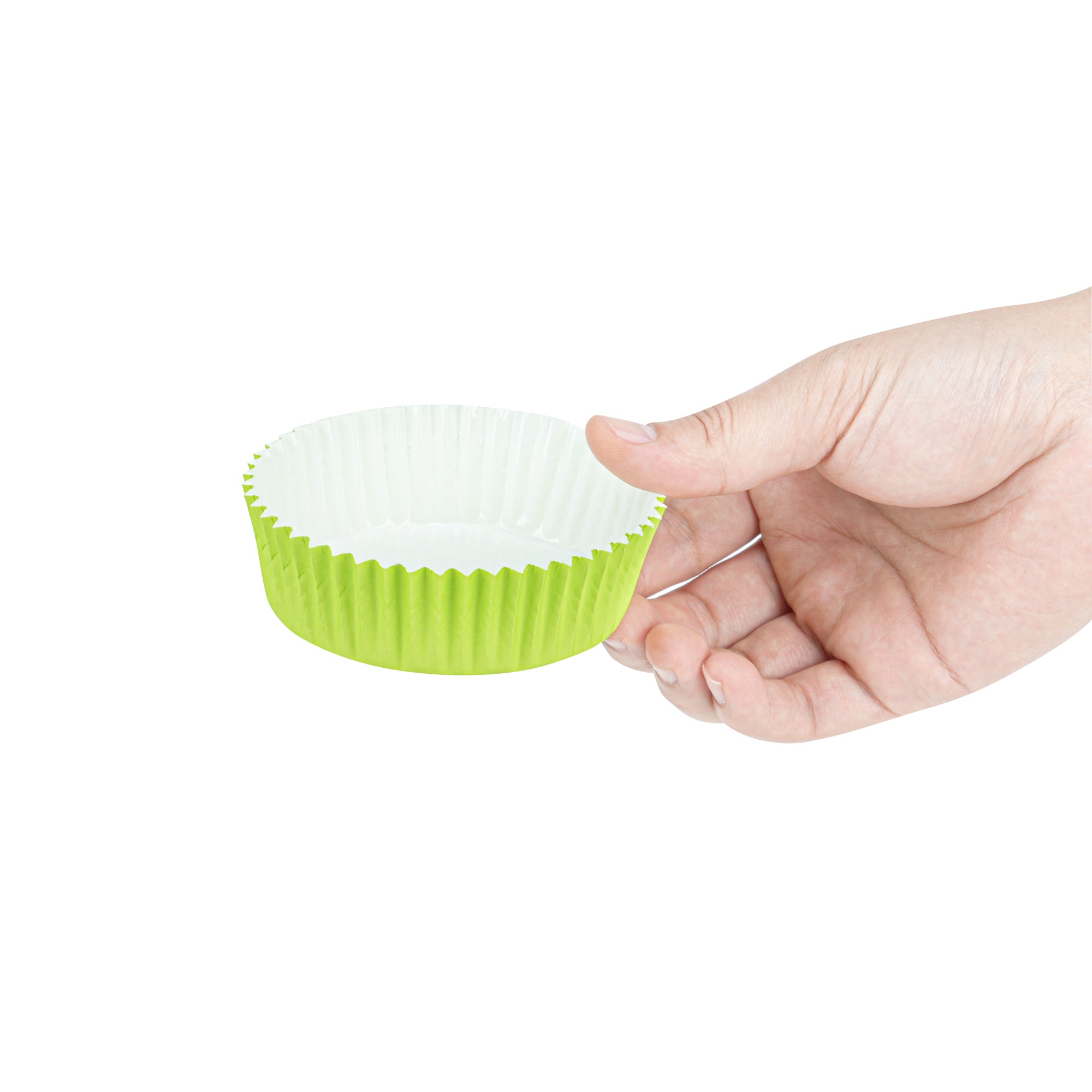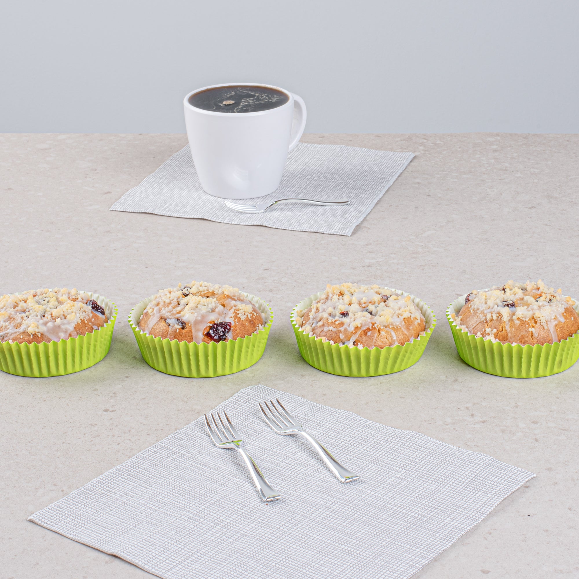 Ensure flawless presentation with Panificio Grease-Resistant Cupcake Liners. These cupcake liners feature a grease-resistant coating that guarantees an easy release, preventing treats from sticking and maintaining their delectable appearance. Made from heavyweight paper, these liners withstand oven temperatures up to 425 degrees Fahrenheit, providing reliable performance during baking. The ridged design of these cupcake liners accentuates the shape of your muffins and cupcakes, adding an elegant touch to any display. With dimensions of 3.5 inches by 3.5 inches, these paper baking cups fit standard-sized cupcakes perfectly. Their vibrant green color enhances the visual appeal of your sweet creations, making them an ideal choice for bakeries and cafes looking to elevate their presentation. Enhance your dessert offerings with these ridged cupcake wrappers and ensure a professional finish every time. Each order includes 200 Panificio Grease-Resistant Cupcake Liners.