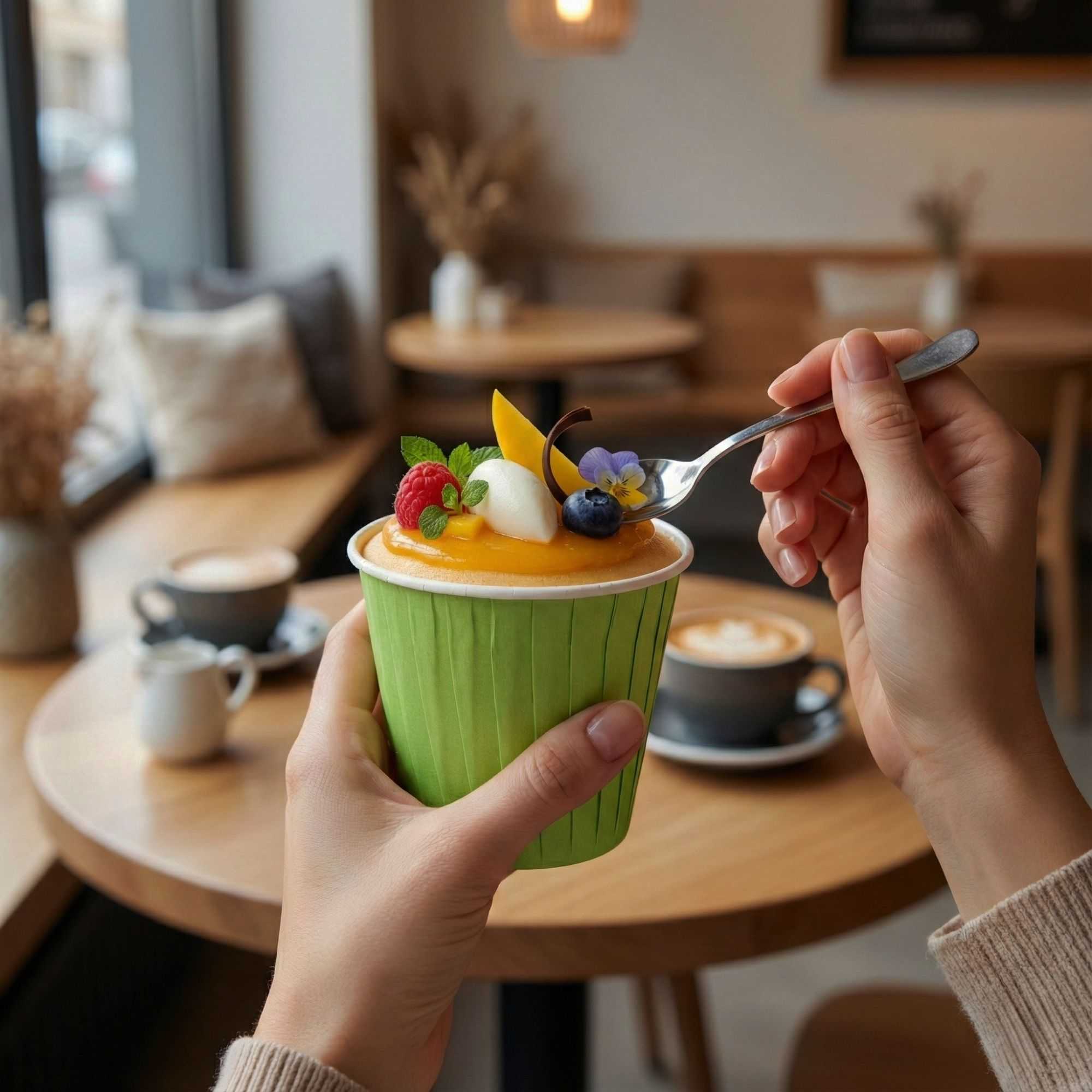4 OZ ROUND ECO GREEN PAPER TALL BAKING CUP - PLEATED