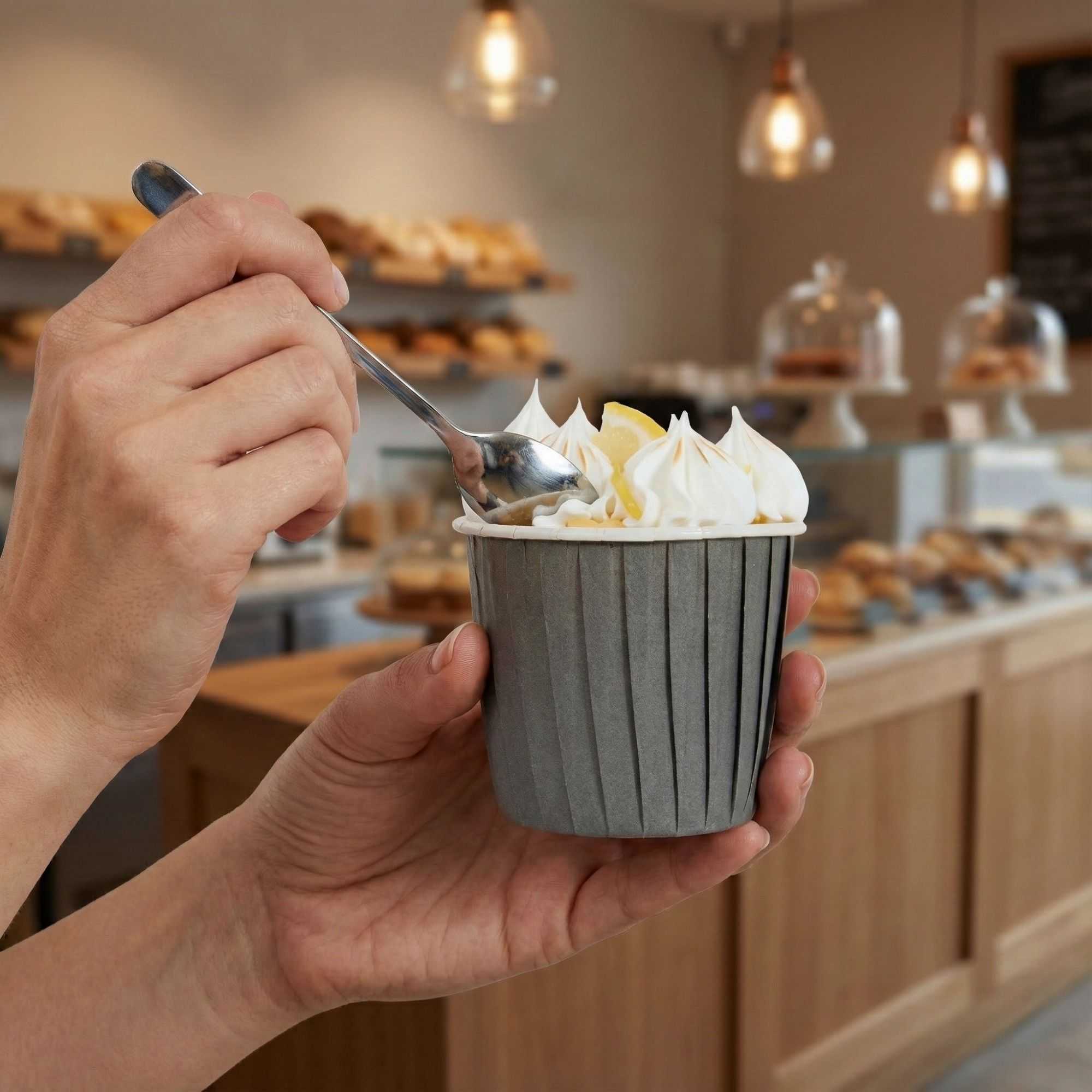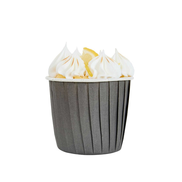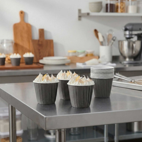 Enhance your baking presentation with effortless style and functionality. The Panificio Grease-Resistant Cupcake Liner's gray paper construction is equipped with a grease-resistant coating, ensuring your treats easily release without sticking. Perfect for showcasing your confections, this cupcake liner features a pleated design that beautifully accentuates the appearance of baked goods, making it a must-have for any bakery or café. With the ability to endure oven temperatures up to 425 degrees Fahrenheit, these liners are not only oven-safe but also freezer-safe and disposable, offering versatility and convenience for busy kitchens. Measuring 2.75 inches in height, each muffin cup holds up to 3.5 ounces, providing ample space for your creations. Choose these paper baking cups to maintain product integrity and enhance kitchen efficiency. Each order includes 200 Panificio Grease-Resistant Cupcake Liners.