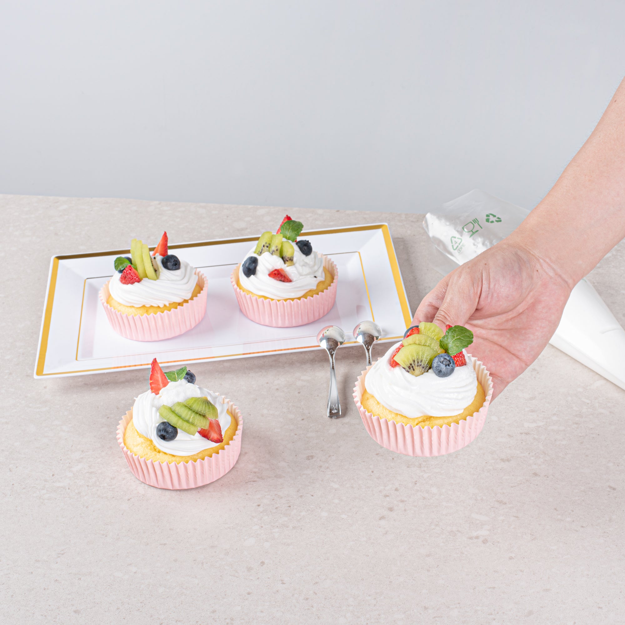Effortlessly enhance your baking presentation with grease-resistant liners. Panificio Grease-Resistant Paper Baking Cups feature a specialized coating that ensures an easy release of treats, making them ideal for bakeries looking to streamline service and reduce waste. Crafted from heavyweight paper, these pink disposable cupcake liners withstand oven temperatures up to 425 degrees Fahrenheit, ensuring reliability during high-volume baking sessions. The elegant ridged design not only provides structural integrity but also beautifully accentuates your baked delights, making it the perfect oven-safe muffin cup for showcasing cupcakes and muffins. Measuring 3.5 inches in diameter and 1 inch in height, these liners are designed to fit standard baking trays while accommodating up to 4 ounces of batter. Upgrade your baking essentials with these stylish and functional paper baking cups. Each order includes 200 Panificio Grease-Resistant Paper Baking Cups.