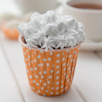 4 OZ ROUND POLKA-DOTTED HOT ORANGE PAPER TALL BAKING CUP - PLEATED