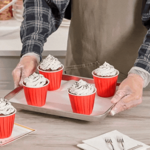- Pleated design accentuates cookies, cupcakes, and pastries