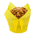 Brighten up your dessert presentations with our Panificio 4-ounce Yellow Paper Tulip Baking Cups. Combining a refreshing yellow hue with a four-petaled design, these paper muffin liners are ideal for stylishly preparing all types of treats. Their greaseproof paper construction prevents unsightly grease stains from oily batters or buttery frostings, while their bright yellow color effortlessly attracts your customers' attention. Conveniently oven-safe up to 425°F, these yellow cupcake liners can be used to bake and serve your baked goods. Not to mention, their greaseproof design ensures they easily peel away from your cupcakes to prevent messes at your bakery, cupcake shop, diner, or other foodservice establishment. Each of these tulip cupcake wrappers measures 3.5 inches in diameter and can contain up to 4 ounces. These freezer-safe baking cups are shipped in a 200 count box.