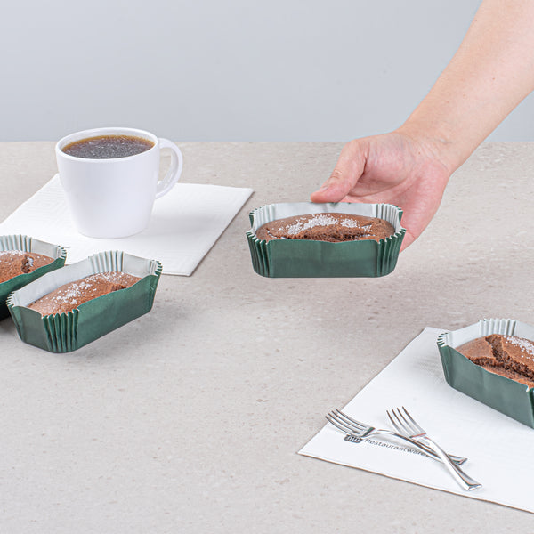 Ensure flawless presentation with Panificio Grease-Resistant Paper Baking Cups. Designed with a grease-resistant coating, these paper baking cups ensure easy release of your delicious treats, preventing them from sticking and maintaining their perfect shape. Crafted from heavyweight paper, they withstand high oven temperatures up to 425 degrees Fahrenheit, making them ideal for professional kitchens that require reliable cupcake liners. The ridged design beautifully accentuates cookies, cupcakes, and more, adding a touch of elegance to every creation and enhancing their visual appeal in dessert displays. With dimensions of 4.6 inches in length, 2.5 inches in width, and 1.25 inches in height, these disposable muffin cups provide a convenient option for both baking and serving. Elevate your bakery's efficiency and presentation with these versatile green cups, perfect for a variety of sweet treats. Each order includes 200 Panificio Grease-Resistant Paper Baking Cups.