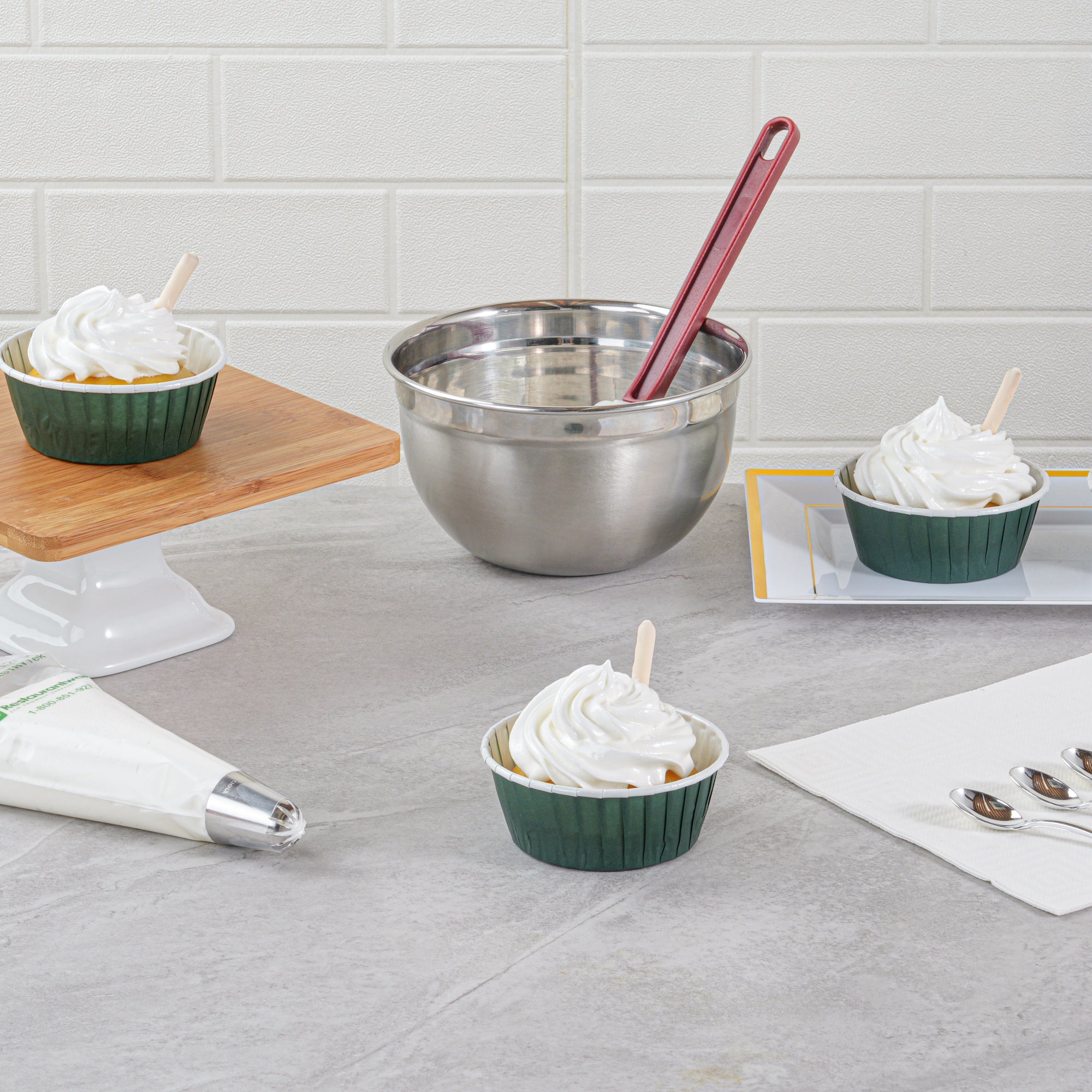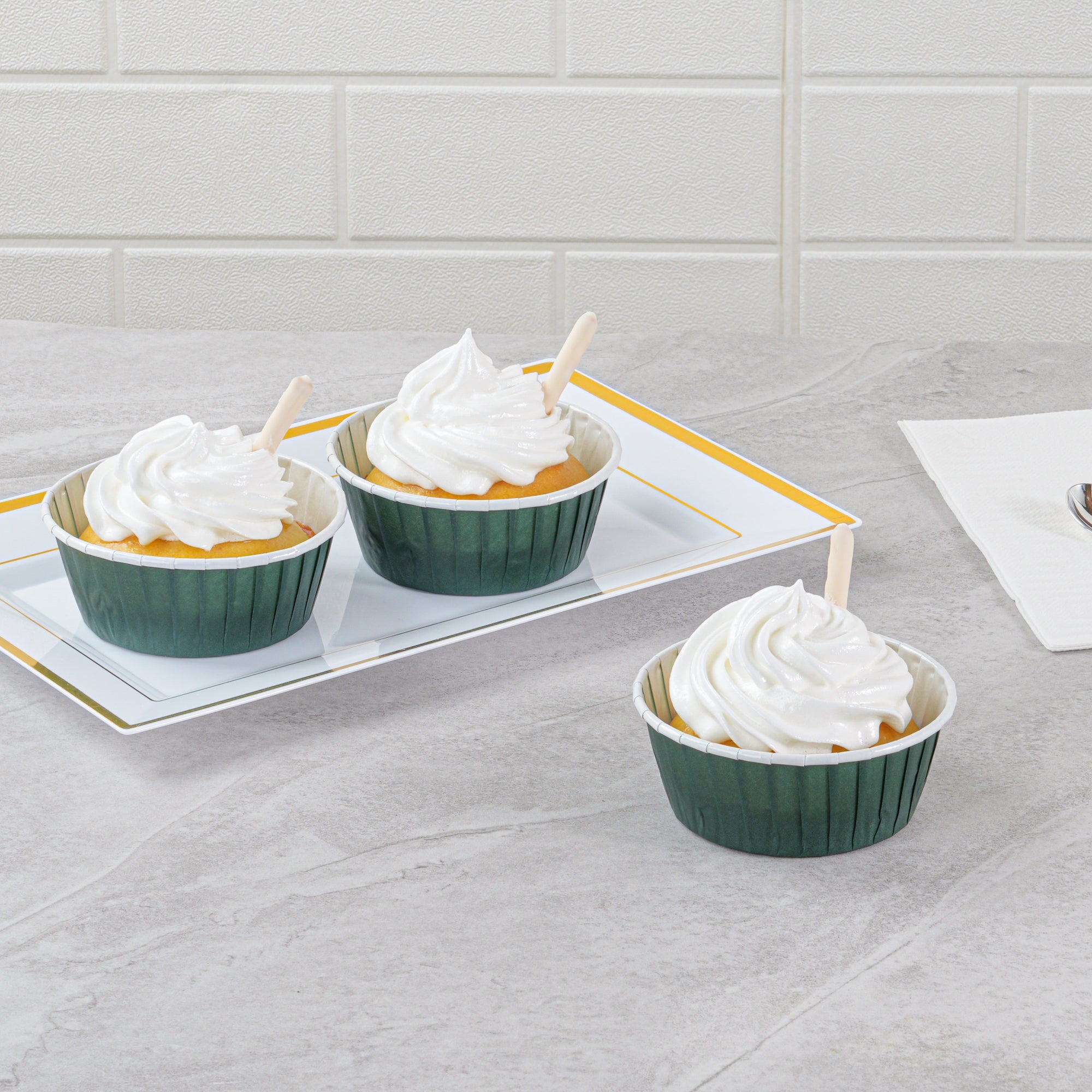 Enhance your baking presentation with reliable, grease-free releases. Panificio Grease-Resistant Cupcake Liners ensure that your cupcakes and muffins slide out effortlessly, thanks to their innovative grease-resistant coating. These cupcake liners are crafted from heavyweight paper that withstands oven temperatures up to 425 degrees Fahrenheit, making them an ideal choice for busy bakeries and cafes. Each liner measures 3.65 inches in length and width, offering ample space for your culinary creations while their pleated design beautifully accentuates your baked delights. These muffin liners are also freezer-safe, providing versatility for various baking needs and ensuring your treats remain fresh and delicious when you need disposable baking cups. Plus, their vibrant green color adds a pop of style to your display, enticing customers with visually appealing baked goods. Elevate your baking presentation today with these essential cupcake liners. Sold in a 200 count box.