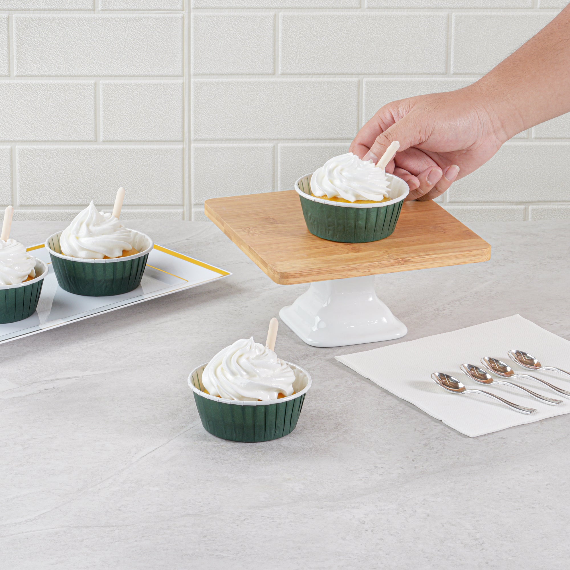 - Pleated design accentuates cookies, cupcakes, and pastries