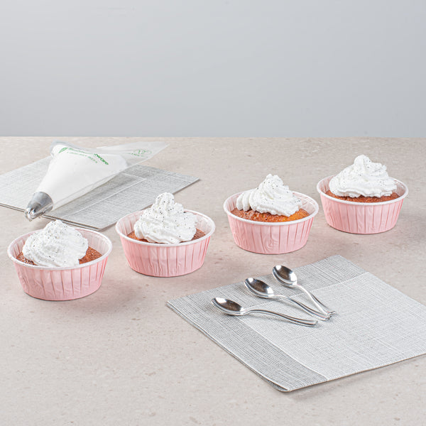 Maintain flawless presentation with oven-safe cupcake liners. Panificio Grease-Resistant Oven-Safe Cupcake Liners feature a grease-resistant coating that ensures easy treat release, allowing you to serve pristine cupcakes and muffins with confidence. These greaseproof cupcake liners are crafted from heavyweight paper, expertly designed to withstand high oven temperatures up to 425 degrees Fahrenheit, ensuring reliable performance in demanding kitchen environments. The pleated design beautifully accentuates your baked delights, turning ordinary treats into eye-catching masterpieces and making these pleated baking cups a preferred choice for professional bakers. Measuring 3.65 inches in length and width with a height of 1.57 inches, they are perfect for standard-sized cupcakes. Crafted from sturdy paper, these liners are freezer-safe and disposable, offering the convenience and efficiency that busy kitchens demand. Elevate your baking presentation and efficiency with these remarkable pink liners. Sold in a 200 count box.