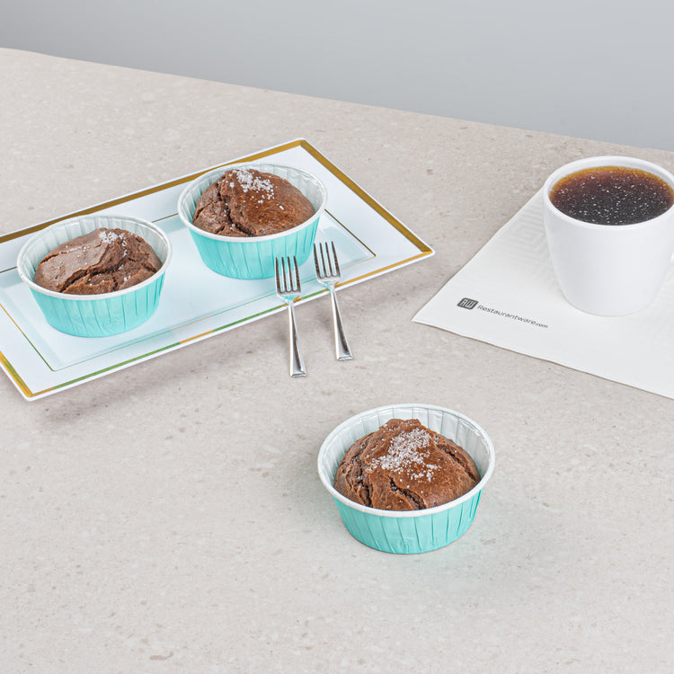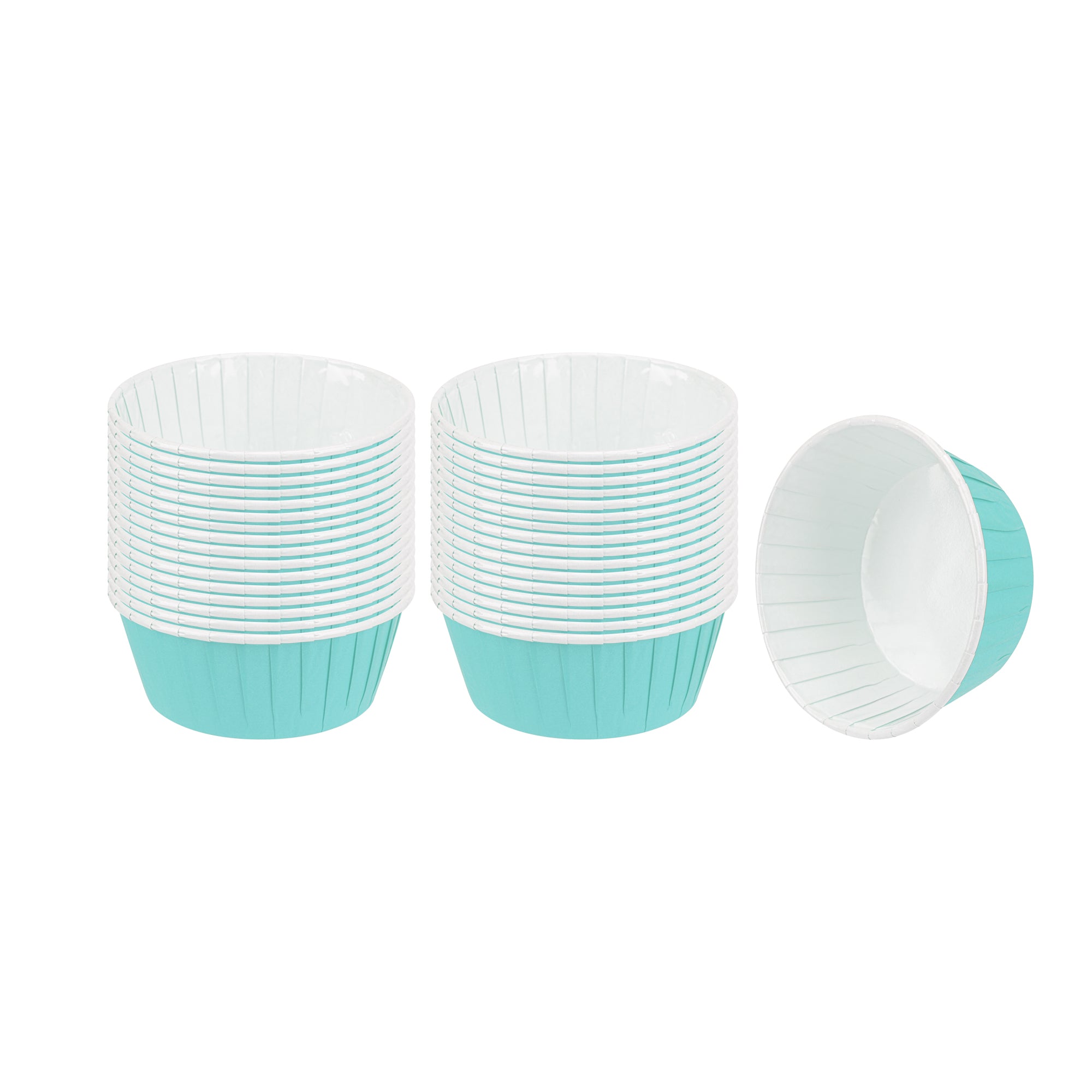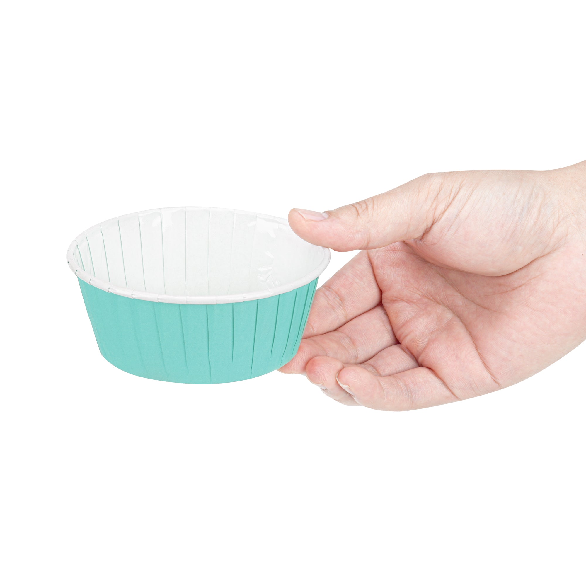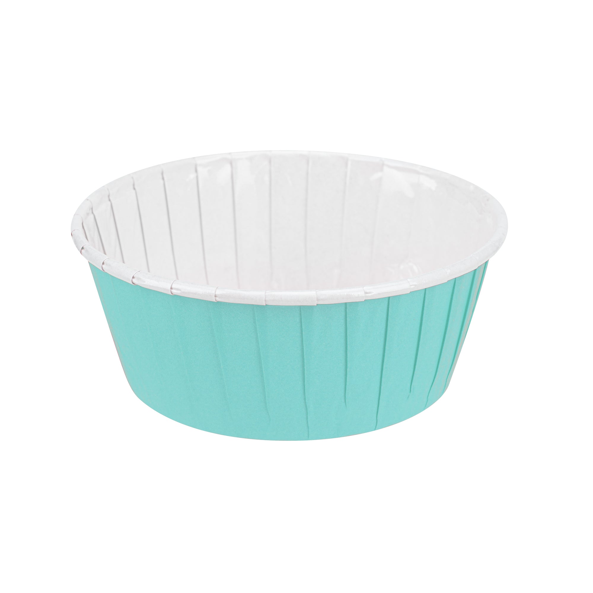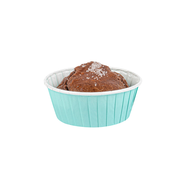 Enhance your presentation with grease-resistant cupcake liners. The Panificio Grease-Resistant Round Baking Cups feature a specialized coating that ensures easy release of your treats, preventing sticking and maintaining the integrity of your creations. Made from heavyweight paper, these round baking cups can withstand oven temperatures up to 425 degrees Fahrenheit, making them ideal for professional kitchens requiring reliable and consistent performance. With a vibrant turquoise color and a pleated design, they beautifully accentuate your baked delights, turning every dessert into a visual masterpiece. Each cup measures 3.65 inches in diameter and 1.57 inches in height, providing ample space for your cupcakes or muffins. These disposable cupcake holders are freezer-safe, allowing you to prepare and store your confections with ease. Invest in these round baking cups to streamline your baking process and deliver impressive results. Sold in a 200 count box.