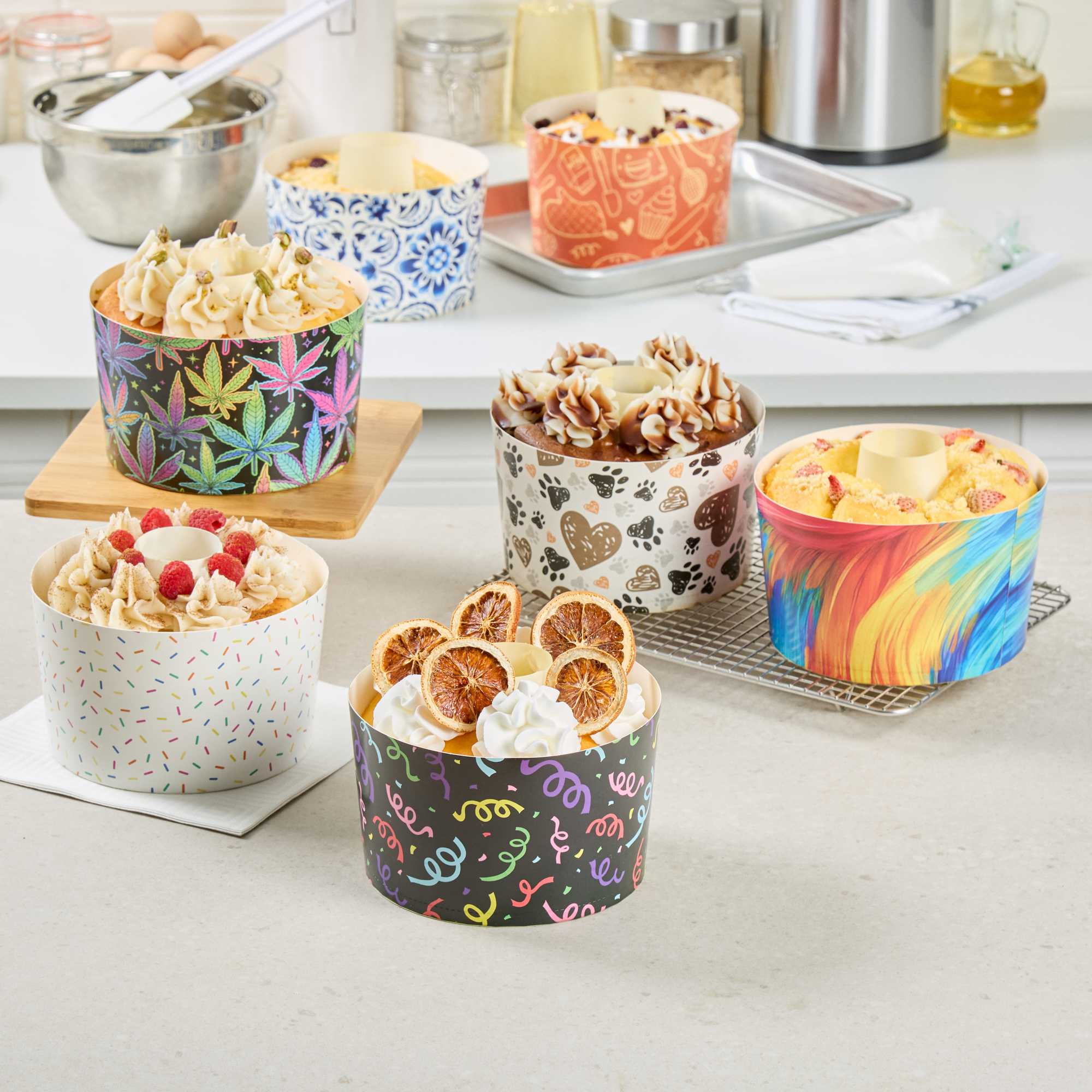 53 OZ PAPER ANGEL FOOD TUBE PAN - COLORFUL CONFETTI, GREASEPROOF
