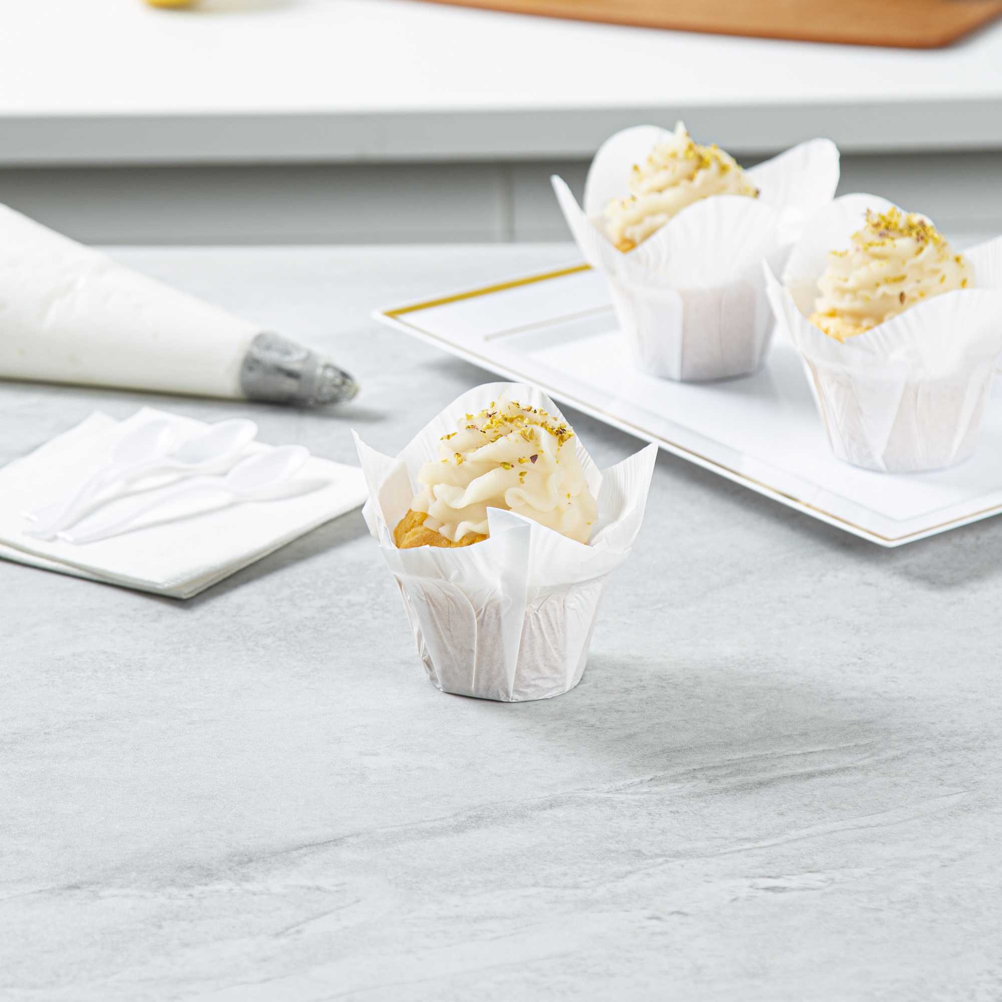 Designed with efficiency in mind, these sturdy baking cups are disposable, promoting an easy cleanup after every baking session. No hassle of scrubbing and washing after events!