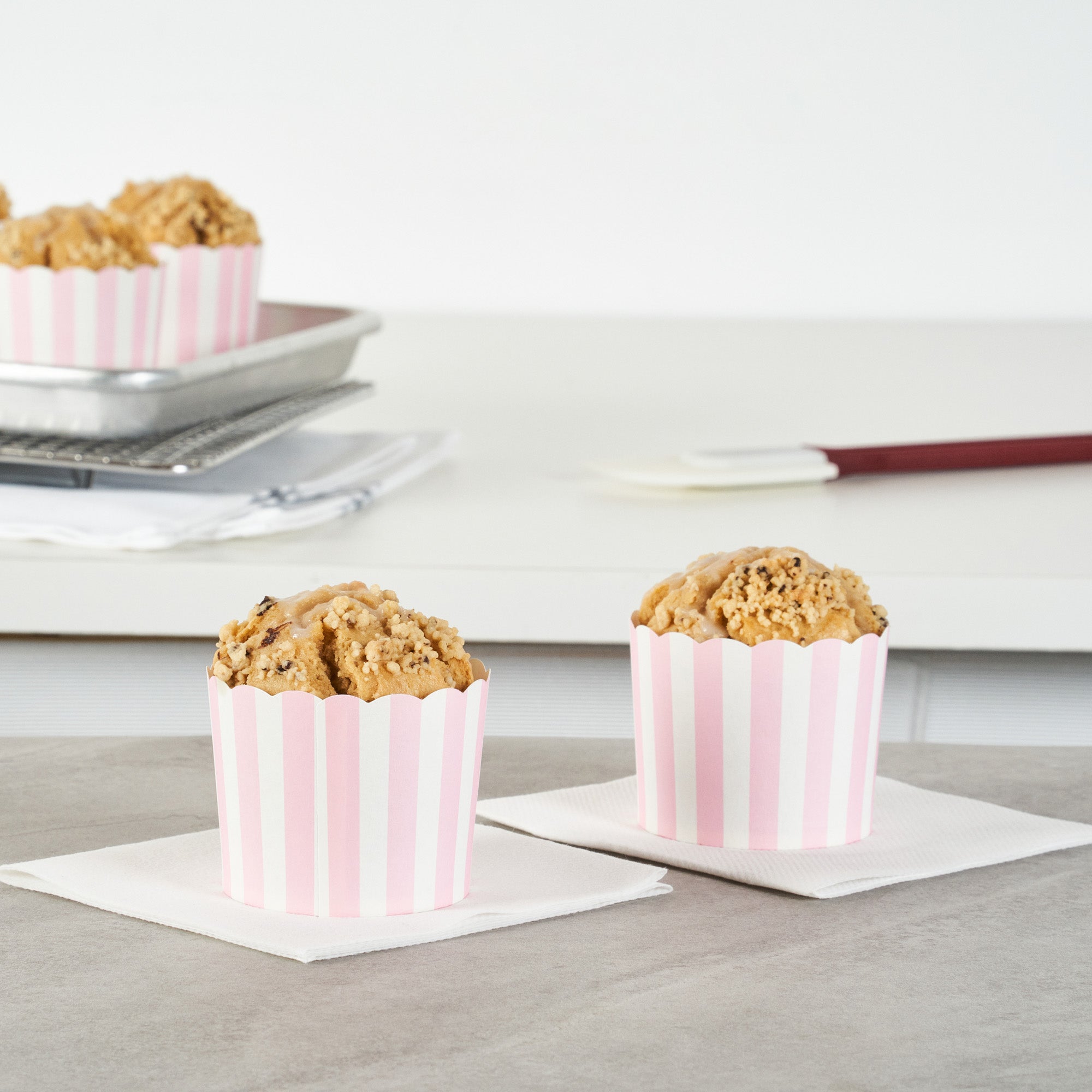 6 OZ ROUND STRIPE PINK PAPER CLASSIC BAKING CUP - SCALLOPED