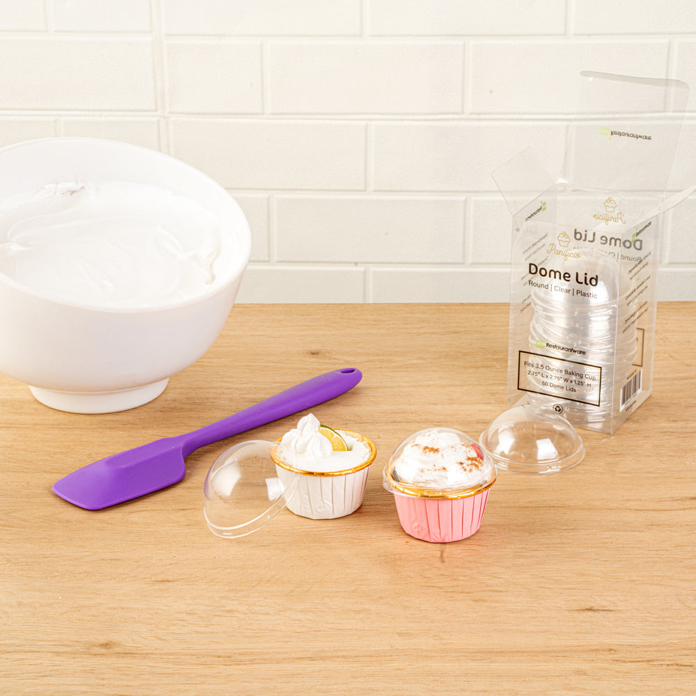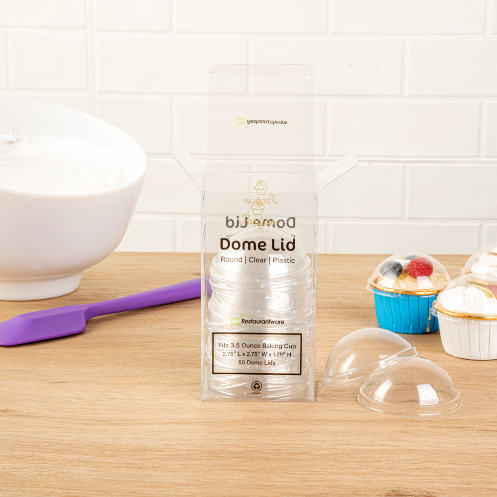 ROUND CLEAR PLASTIC DOME LID - FITS 3.5 OZ FOIL PAPER BAKING CUP
