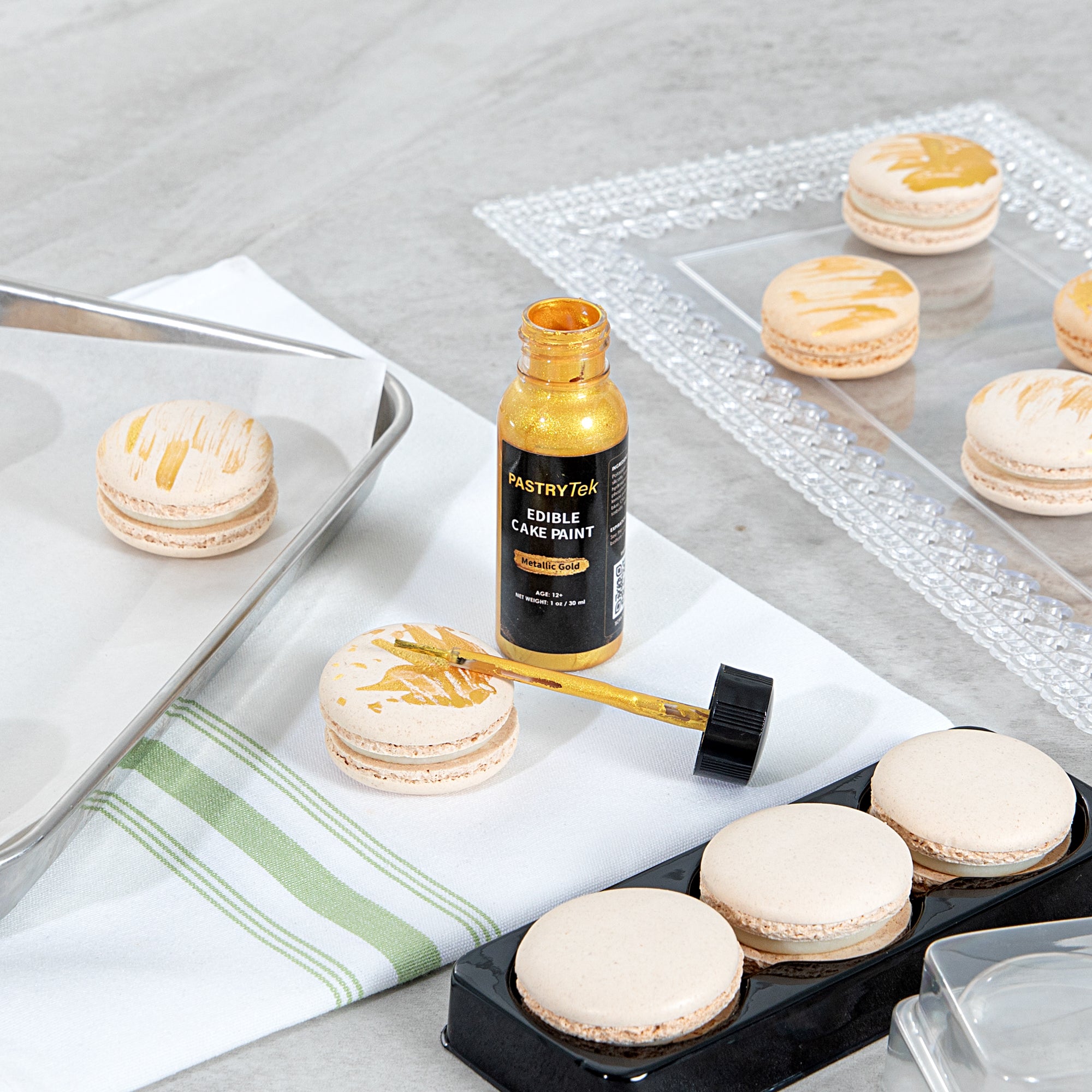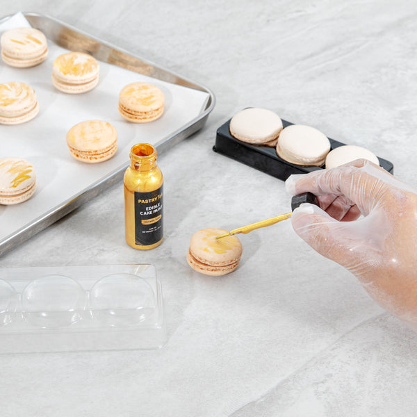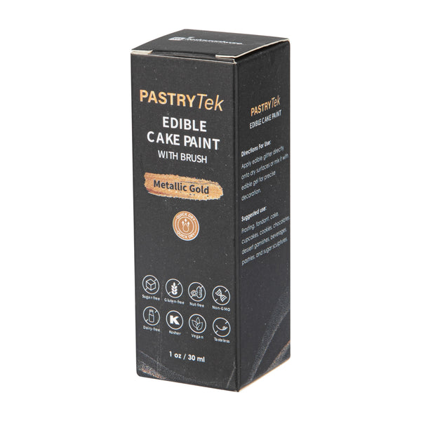 Revitalize your dessert creations with brilliant gold finishes. Pastry Tek 1 oz Metallic Gold Edible Food Coloring / Cake Paint offers a liquid shimmer that ensures vibrant gold cake decoration, transforming ordinary desserts into show-stopping masterpieces. Its quick-dry formula significantly reduces wait time between layers, improving efficiency and reducing downtime for pastry chefs using metallic cake paint. Housed in a single color bottle, it simplifies inventory management, making it a smart choice for busy kitchens requiring edible paint for cookies. The included small brush on the lid facilitates creative designs, perfect for larger-scale applications that food grade metallic pens might not handle as efficiently. With dimensions of 1.10 inches by 1.10 inches by 3.31 inches, this edible gold paint is compact and easy to store. Sold in a 1 count box.