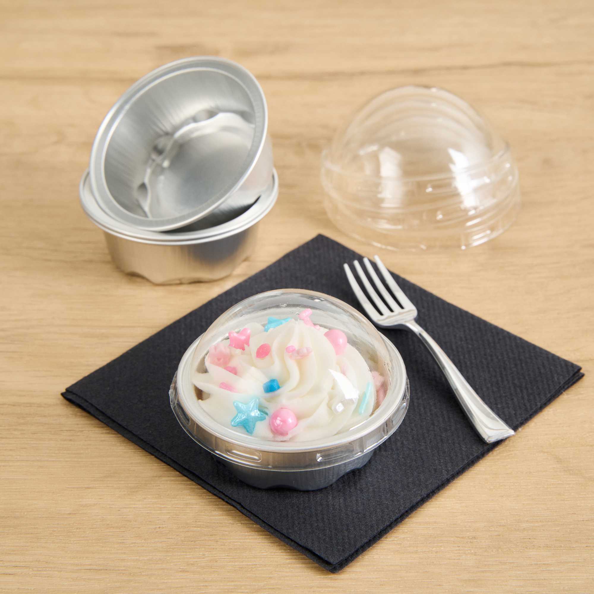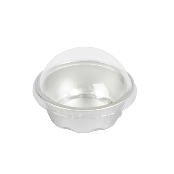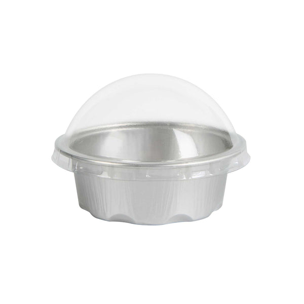 2 OZ ROUND SILVER ALUMINUM BAKING CUP - WITH PLASTIC DOME LID