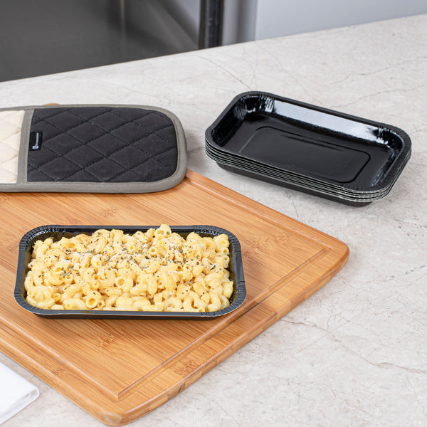 24 OZ RECTANGLE BLACK PAPERBOARD TRAY - OVEN-SAFE