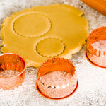3-PIECE COPPER-PLATED METAL FLUTED ROUND COOKIE CUTTER SET