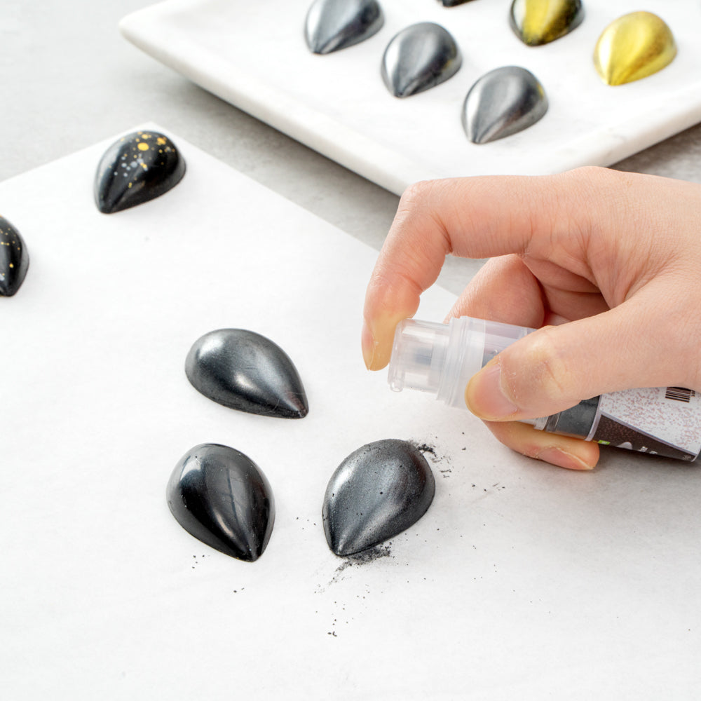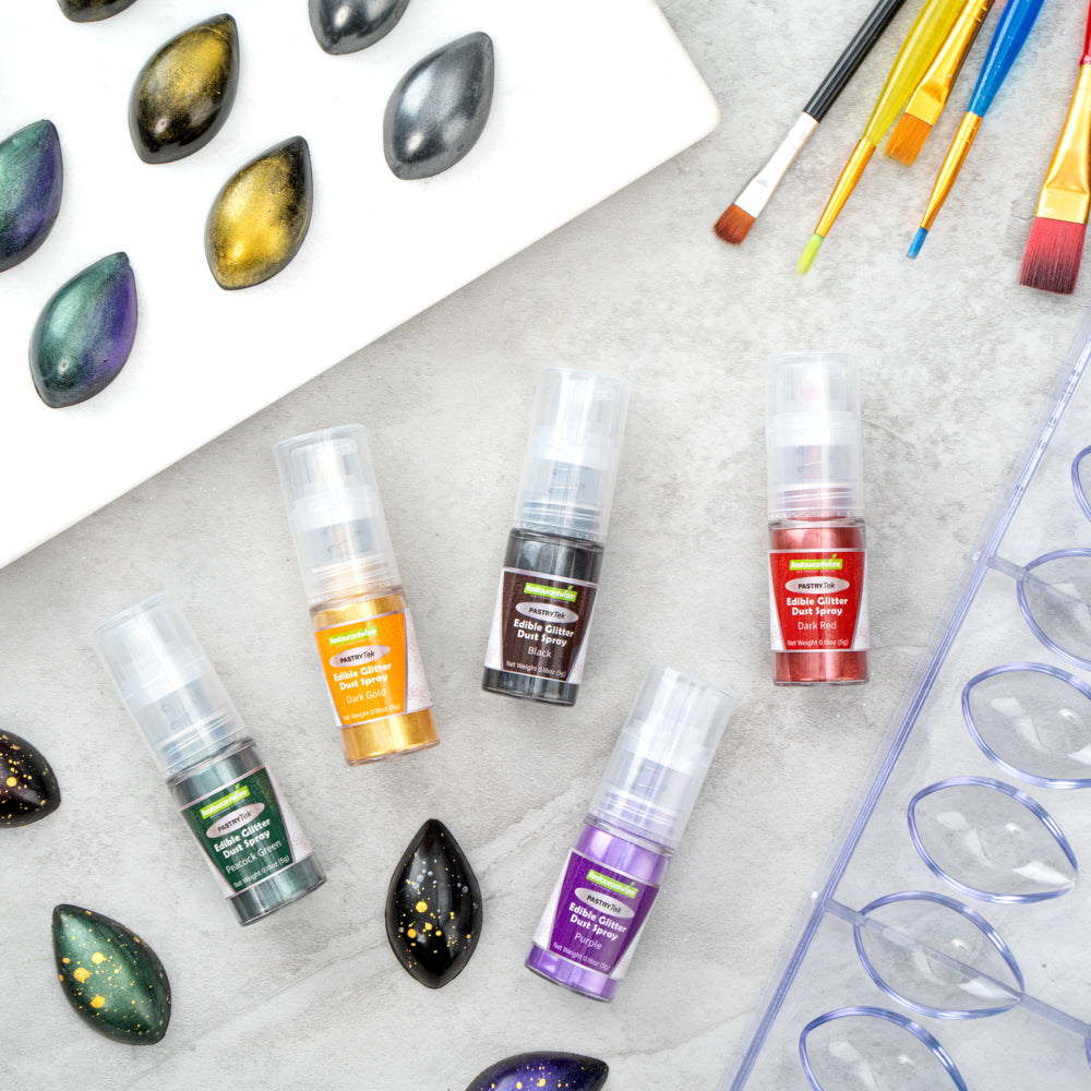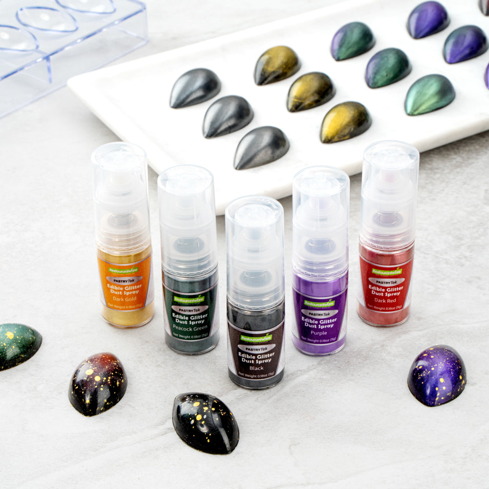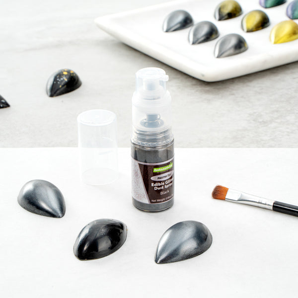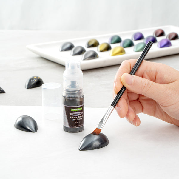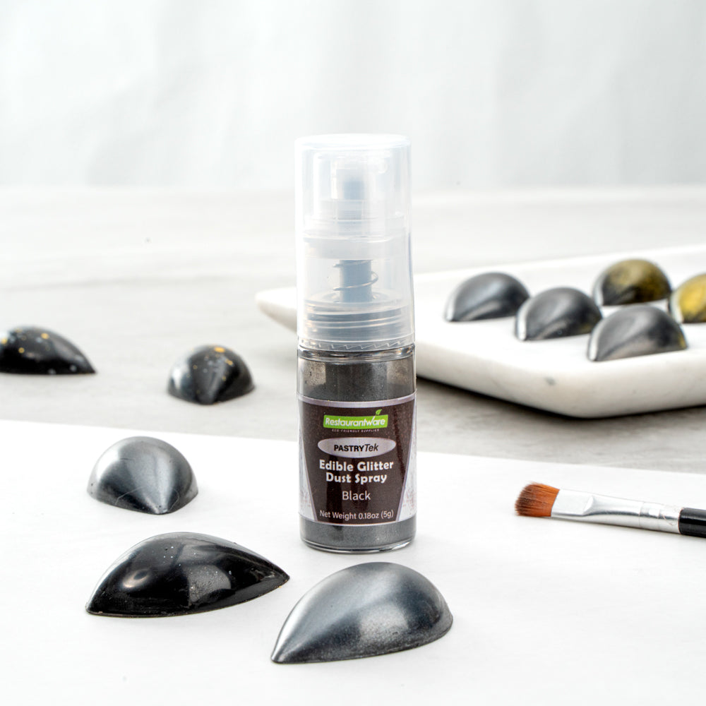 Make your cocktails sparkle with our Pastry Tek 5-Gram Black Edible Glitter Dust Spray. This glitter is edible and can be used to decorate hot and cold foods. Great for creating unique beverage presentations, these glitter flakes are water-soluble. Designed with a non-aerosol pump spray, this black edible glitter makes it easy to add shine to cakes. To meet customers' dietary restrictions, this edible glitter spray for cakes is FDA-approved, kosher, and vegan. This dust spray must be stored in a cool, dry place away from direct sunlight, frost, and heat. The black color of this edible food glitter matches the theme of your desserts and events. This shimmer pump contains 5 grams of glitter. Sold in a 1 count box.