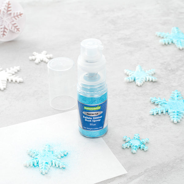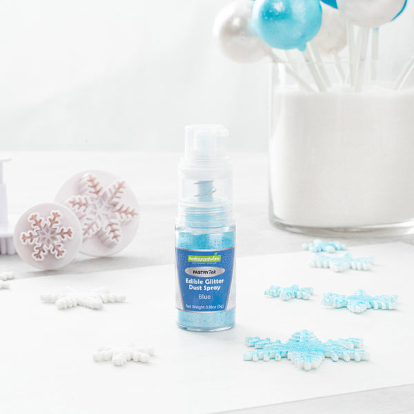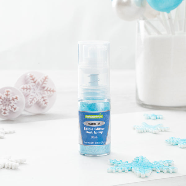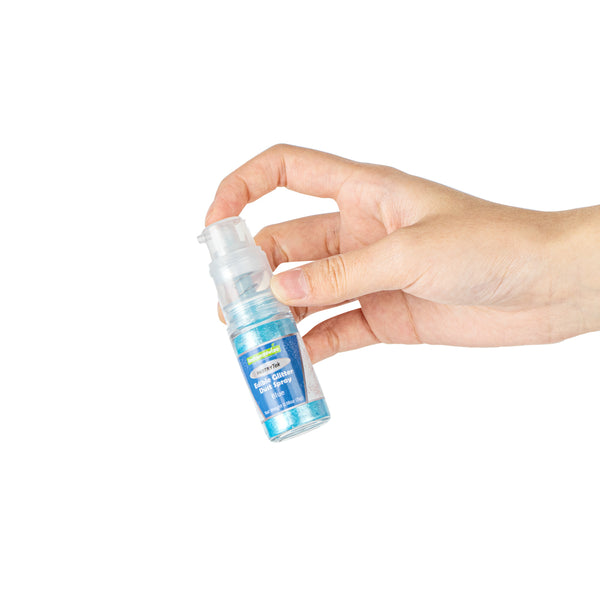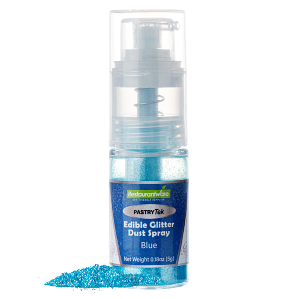 Give your cookies a bold look with our Pastry Tek 5-Gram Blue Edible Glitter Dust Spray. Perfect for decorating hot and cold foods, this dust spray is edible. To create eye-catching cocktails, this edible food glitter is water-soluble. Featuring a non-aerosol pump spray, this blue edible glitter can add sparkle at any angle, ideal for cake pops. To serve customers with different dietary restrictions, this edible glitter for strawberries is FDA-approved, Kosher, and vegan. To keep it from losing its luster when not in use, this edible sparkle for cakes must be stored in a cool, dry place away from direct sunlight, frost, and heat. With a blue color, this glitter dust spray can match the icings on your cakes and cupcakes. This edible glitter for drinks contains 5 grams of sparkles. Sold in a 1 count box.