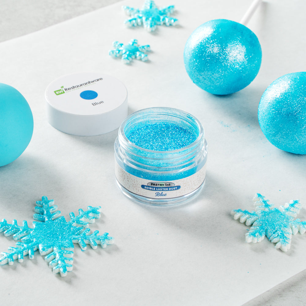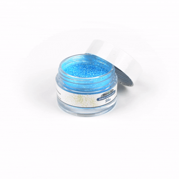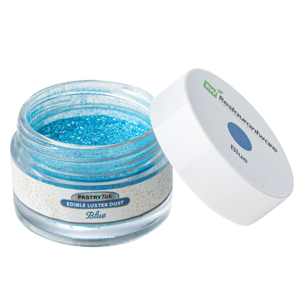 Impress your guests with our Pastry Tek 5-gram Blue Edible Luster Dust. This edible glitter consists of FDA-approved ingredients to cleanly decorate all kinds of treats or beverages. Plus, it's also kosher-certified. To effortlessly mix into wet ingredients or brush onto dry ingredients, this luster dust is water-soluble. Featuring a shimmer blue finish, this food-grade dessert glitter is perfect for all kinds of themed events or special occasions. Equipped with a tamper-evident, inner protective seal, this food glitter ensures quality and avoids messy spills. This edible shimmer has a capacity of 5 grams and is suitable for hot or cold foods. Sold in a 1 count box. Store in a cool, dry place away from direct sunlight to preserve the quality of this cake glitter.