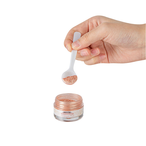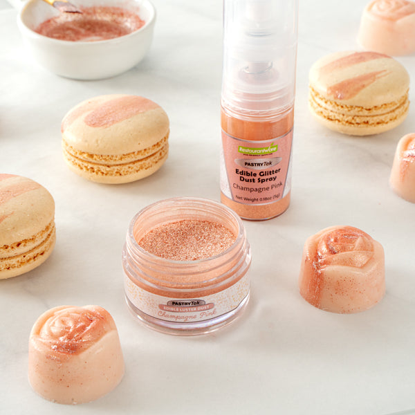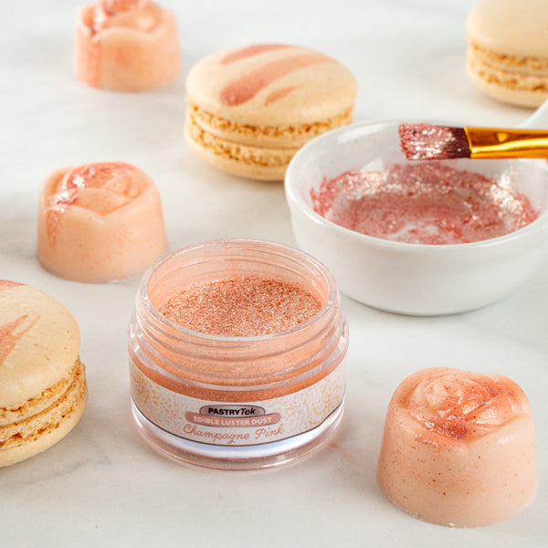 Easily level up your sweet treats and cocktails with our Pastry Tek 5-gram Champagne Pink Edible Luster Dust. The edible cake dust is FDA-approved and kosher-certified, perfect to use on desserts or cocktails. To avoid altering the taste of your goods, this edible luster dust is flavorless. For effortless cake decorating, this edible glitter is water-soluble to effortlessly mix or blend into dry or wet ingredients. Plus, this luster dust is constructed with a tamper-evident, inner protective seal to avoid any potential messy spills. This luster dust comes in a champagne pink finish to add a pop of shine to your celebratory toast drink or cake. This champagne pink luster dust has a 5-gram capacity to easily decorate all kinds of hot or cold edible food projects. Sold in a 1 count box. To maintain its high quality, store in a cool, dry environment away from direct sunlight.
