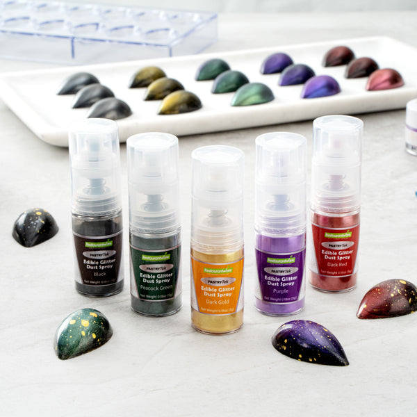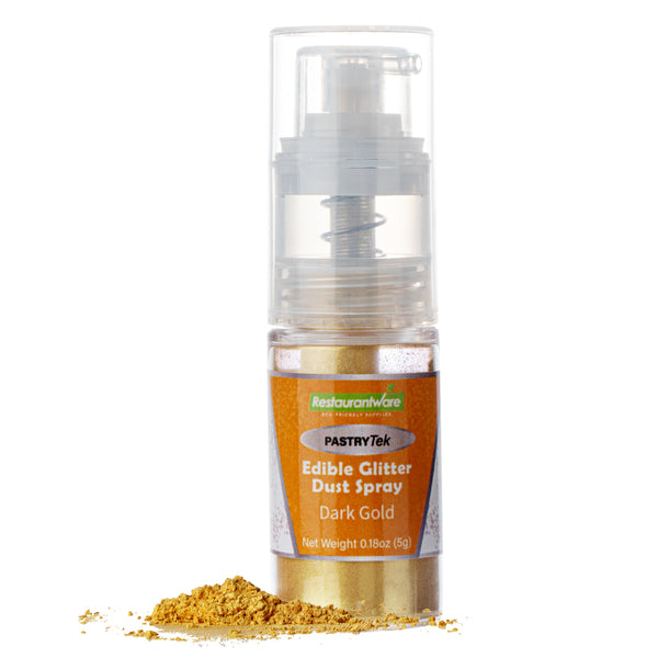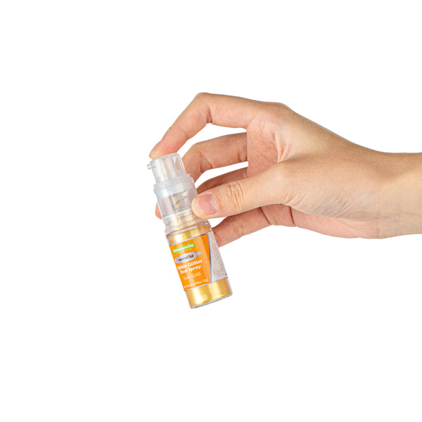 Give your cakes some shine with our Pastry Tek 5-Gram Champagne Gold Edible Glitter Dust Spray. Made for use on hot or cold foods, these food-grade sparkles for cakes are edible. To give drinks a cute appearance, this gold edible glitter is water-soluble. The non-aerosol pump spray of these edible sparkles for cakes emits a steady flow of glitter for easy decoration. To create pastries that suit the diet of many guests, this glitter dust spray is FDA-approved, kosher-certified, and vegan. For easy maintenance, this edible gold glitter must be stored in a cool, dry place away from direct sunlight, frost, or heat. With a gold color, this edible sugar glitter adds glamour and luxury to your foods and drinks. This food glitter contains up to 5 grams of sparkles. Sold in a 1 count box.