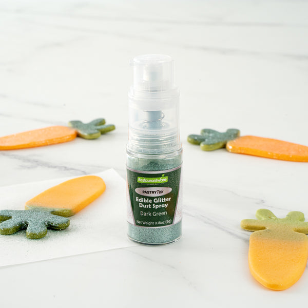 Add beauty to your sugar cookies with our Pastry Tek 5-Gram Dark Green Edible Glitter Dust Spray. Not your average glitter, this edible glitter for drinks can be used to decorate hot or cold foods. Ideal for St. Patrick's day cocktails, this green edible glitter gives your beverages a magical look. Designed with a non-aerosol pump spray, this edible sugar glitter allows you to easily add shiny details to your cupcakes. To make your pastries ready to consume by any guest, this edible glitter dust is FDA-approved, Kosher-certified, and vegan. For keeping it intact after use, this food glitter must be stored in a cool, dry place away from direct sunlight, frost, or heat. The dark green color of this effortlessly matches the color scheme of your dishes or catering venue. These edible sparkles contain up to 5 grams of glitter. Sold in a 1 count box.