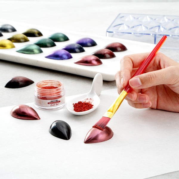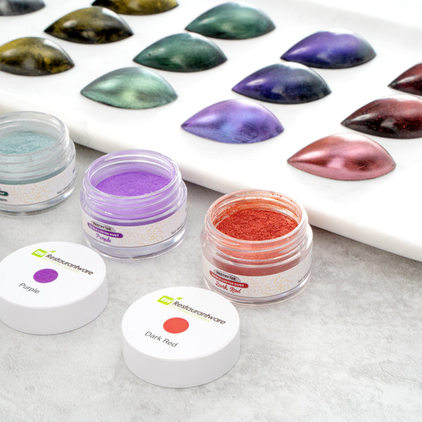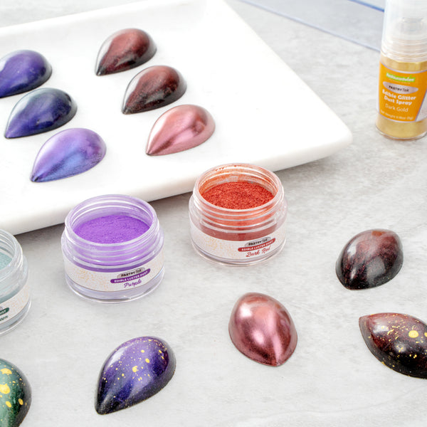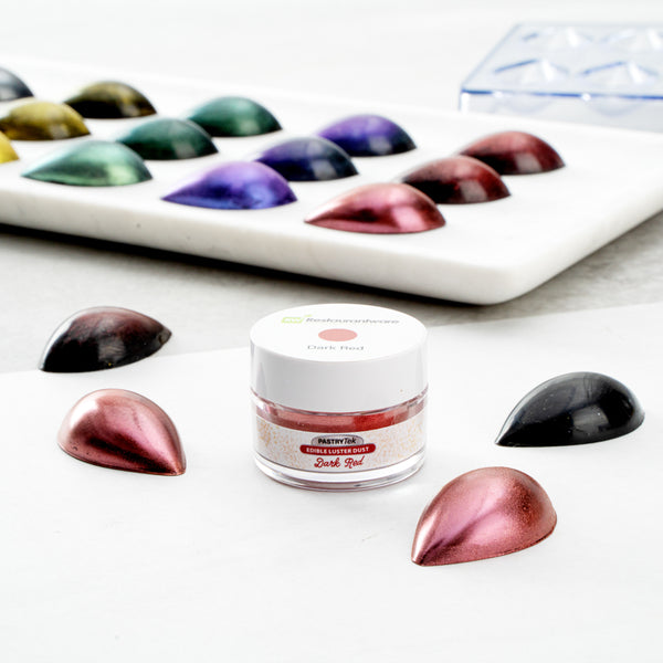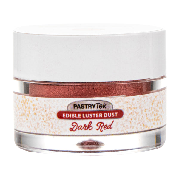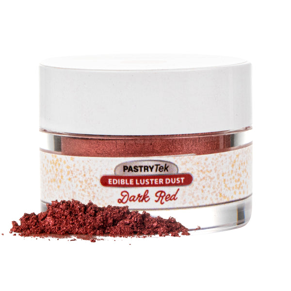 Use our Pastry Tek 5-gram Dark Red Edible Luster Dust to sprinkle, brush, or mix into sweet treats. This edible glitter is made from FDA-approved and kosher-certified ingredients to bake into all types of desserts. With a water-soluble design, this luster dust can be mixed into wet ingredients or brushed onto dry ingredients. To avoid messes and ensure minimal tampering, this edible luster dust has a tamper-evident inner protective seal. Featuring a dark red shimmer finish, this food-grade dessert glitter provides your drink or dessert presentation with a chic look. This food glitter has a capacity of 5 grams to continuously decorate a variety of hot or cold goods. Sold in a 1 count box. Store in a cool, dry place away from direct sunlight to preserve the quality of this cake glitter.