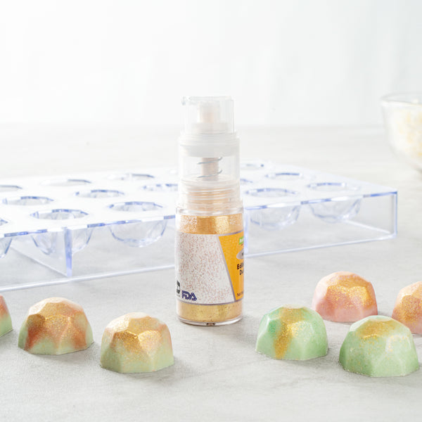 Add a touch of elegance to your culinary creations. Pastry Tek Edible Gold Spray transforms dishes into masterpieces with its FDA-approved powder, ensuring safe culinary applications. This edible gold spray is a must-have for chefs seeking to add a luxurious finish to their desserts and entrees. With its water-soluble design, this gold luster dust effortlessly blends with sauces and soups, making it versatile for both dry and wet ingredients. The inner protective seal of this gold decoration spray preserves its freshness and quality, providing consistent results with every use. With a 5-gram capacity, this 100% edible, and vegan gold spray is perfect for enhancing the visual appeal of your dishes without compromising dietary restrictions. Elevate your plating game and impress your guests with dazzling presentations. Each order includes 1 Pastry Tek Edible Gold Spray.